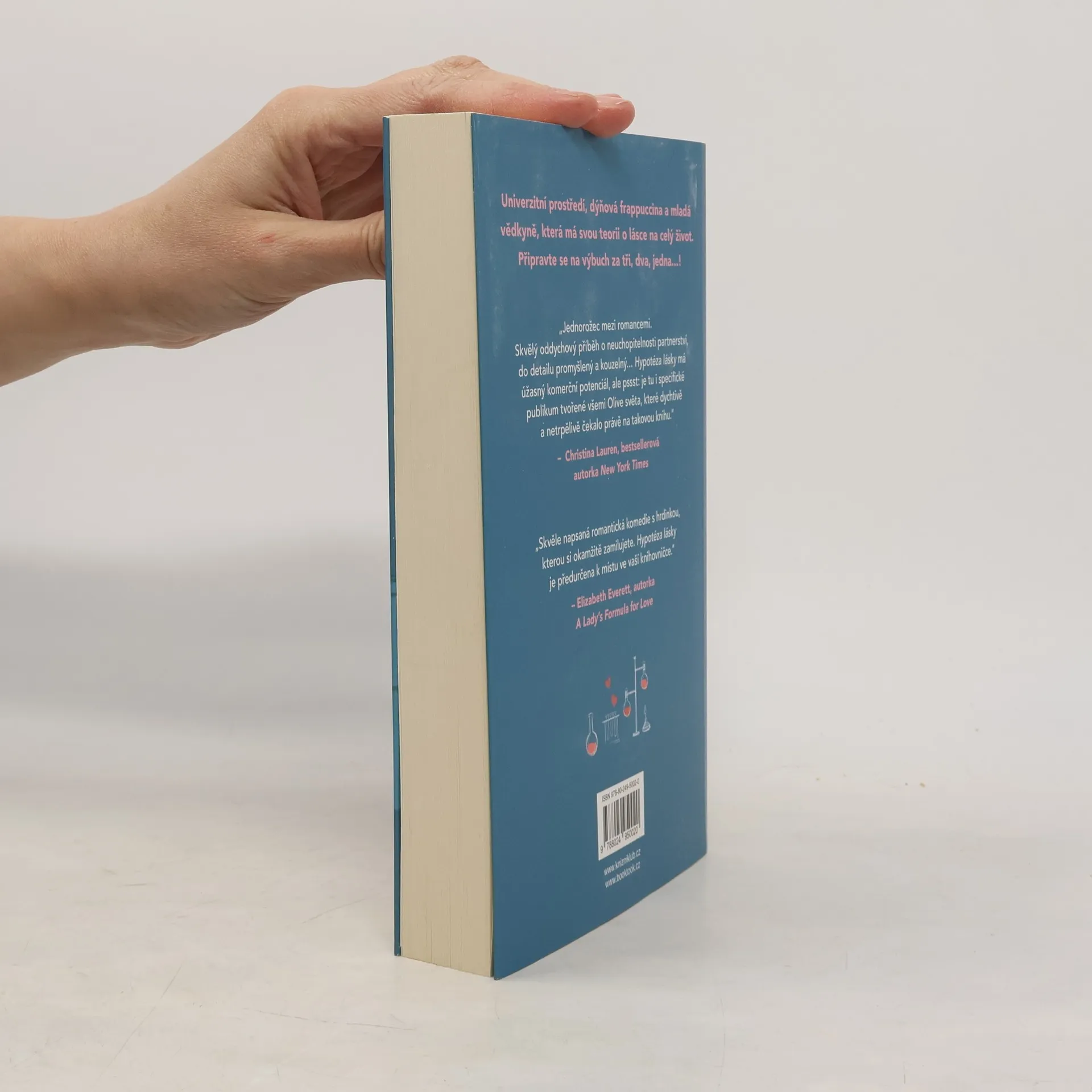 Romantická komedie, která zbořila sociální sítě! Olive je doktorandka na Stanfordu. Na trvalé romantické vztahy příliš nevěří, zato její nejlepší kamarádka ano. Takže pokud ji chce přesvědčit, že s někým randí a její milostný život nabral správný směr, musí na to jít chytře. Vědci totiž potřebují důkazy. Proto Olive, jako každá jiná sebevědomá bioložka, zpanikaří a políbí prvního muže, na kterého narazí – Adama Carlsena. Mladý, v oboru uznávaný profesor má pověst přísného školitele. Byl tak jejich polibek největší chybou, kterou Olive v životě udělala, nebo se tohle setkání může vyvinout v něco víc? Kniha obsahuje také bonusovou kapitolu.