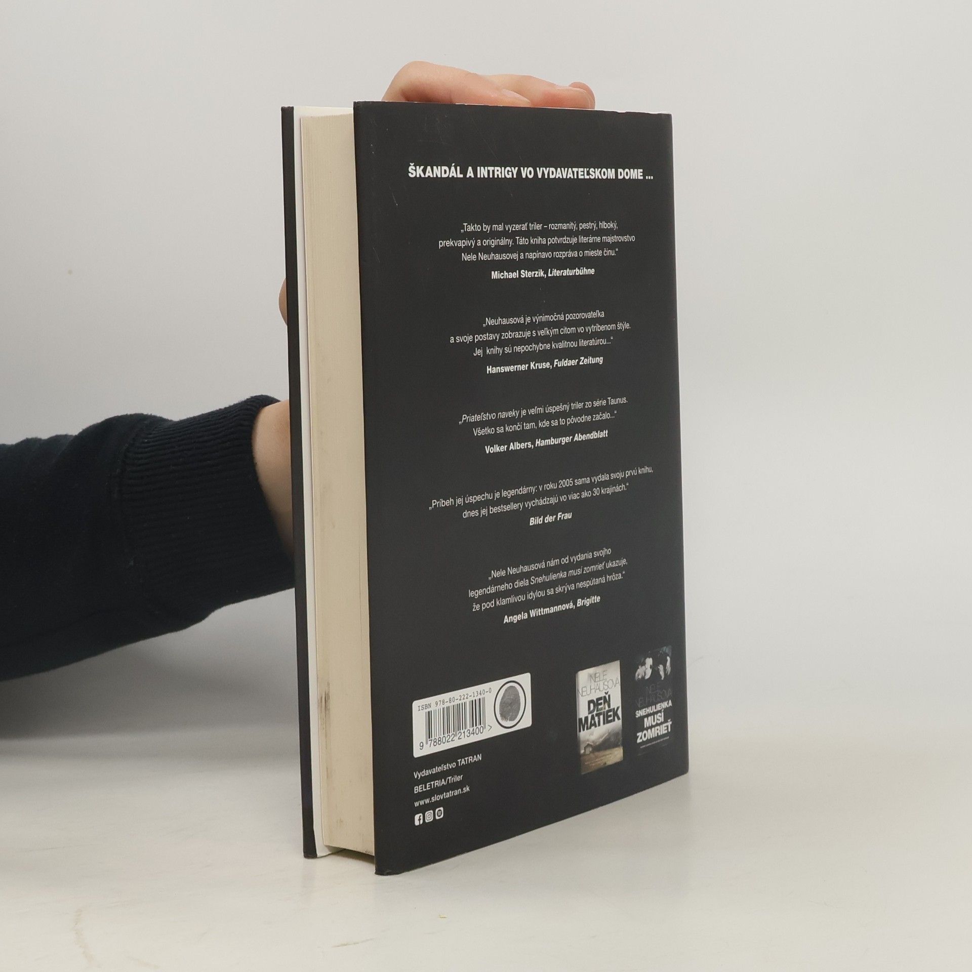 Nele Neuhausová dokáže čitateľa okamžite zaujať a vtiahnuť do deja. Zmizne programová manažérka známeho literárneho vydavateľstva vo Frankfurte. Vyšetrovatelia pri pátraní narazia na staré tajomstvá dobrých priateľov a ešte lepších nepriateľov. To všetko sa odohráva vo svete veľkých autorov, vydavateľstva a vydavateľskej rodiny.