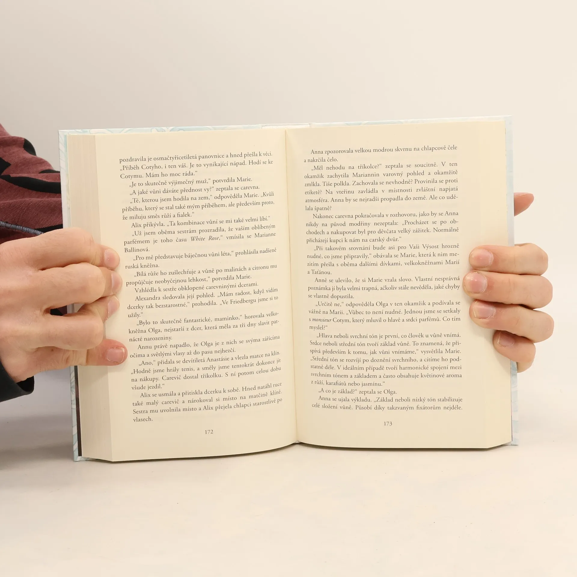 Společensko-historický román z prostředí městské smetánky na konci 19. století vypráví o touze po svobodě, ženské seberealizaci a samostatném uplatnění. Nádherné flakony a omamné vůně! Už jako malá dívka je Marie Carstensová fascinovaná parfémy hamburských dam. A tak si se sestrou Annou slíbí, že si jednou otevřou vlastní parfumerii. Získávají inspiraci v Bruselu, Paříži a ve francouzském městě vůní Grasse, a přitom se setkávají se slavnými lidmi té doby, jako jsou Coco Chanel nebo legendární parfumér François Coty. S mnoha novými nápady se vracejí do hanzovního města a začínají plné nadšení pracovat na otevření svého obchodu Douglas v srdci Hamburku. Nakladatelská anotace.