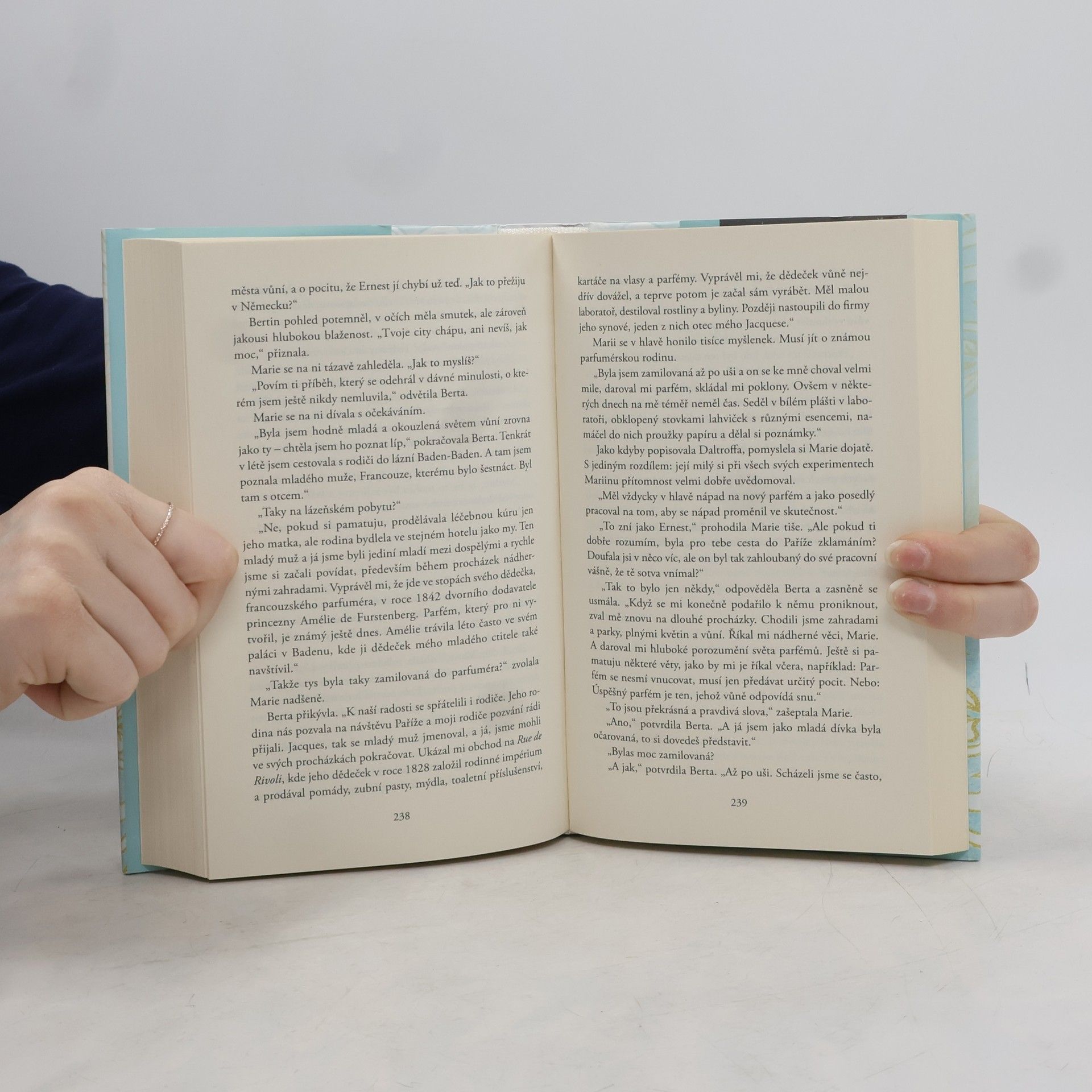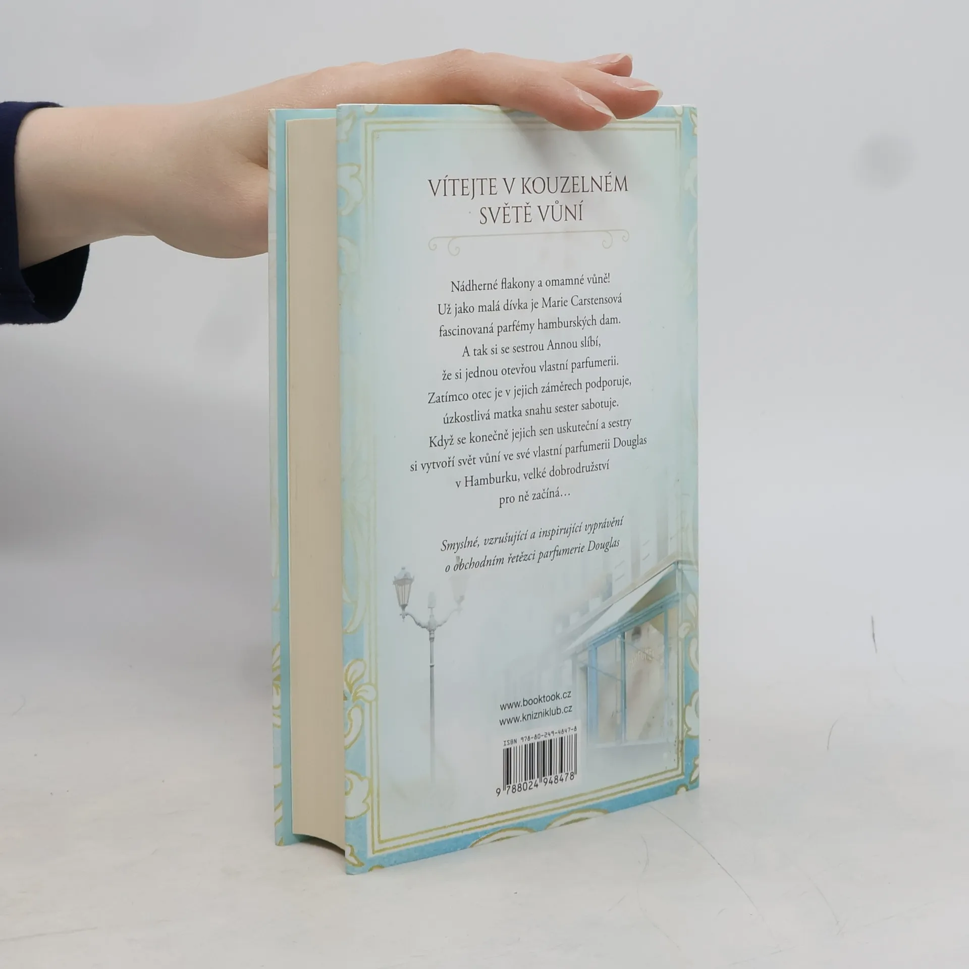 Společensko-historický román z prostředí městské smetánky na konci 19. století vypráví o touze po svobodě, ženské seberealizaci a samostatném uplatnění. Nádherné flakony a omamné vůně! Už jako malá dívka je Marie Carstensová fascinovaná parfémy hamburských dam. A tak si se sestrou Annou slíbí, že si jednou otevřou vlastní parfumerii. Získávají inspiraci v Bruselu, Paříži a ve francouzském městě vůní Grasse, a přitom se setkávají se slavnými lidmi té doby, jako jsou Coco Chanel nebo legendární parfumér François Coty. S mnoha novými nápady se vracejí do hanzovního města a začínají plné nadšení pracovat na otevření svého obchodu Douglas v srdci Hamburku. Nakladatelská anotace.