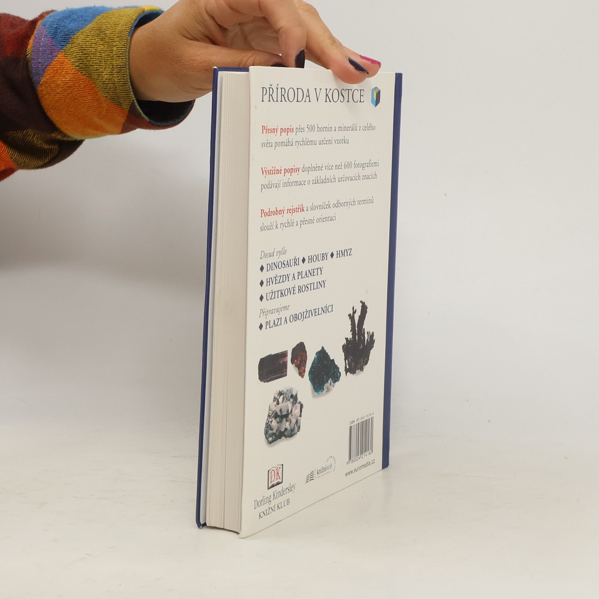 Příroda v kostce Přesný popis více než 500 hornin a minerálů z celého světa Výstižné popisy doplněné více než 600 fotografiemi podávají informace o základních určovacích znacích Podrobný rejstřík a slovníček užitečných odborných termínů slouží k rychlé a přesné orientaci