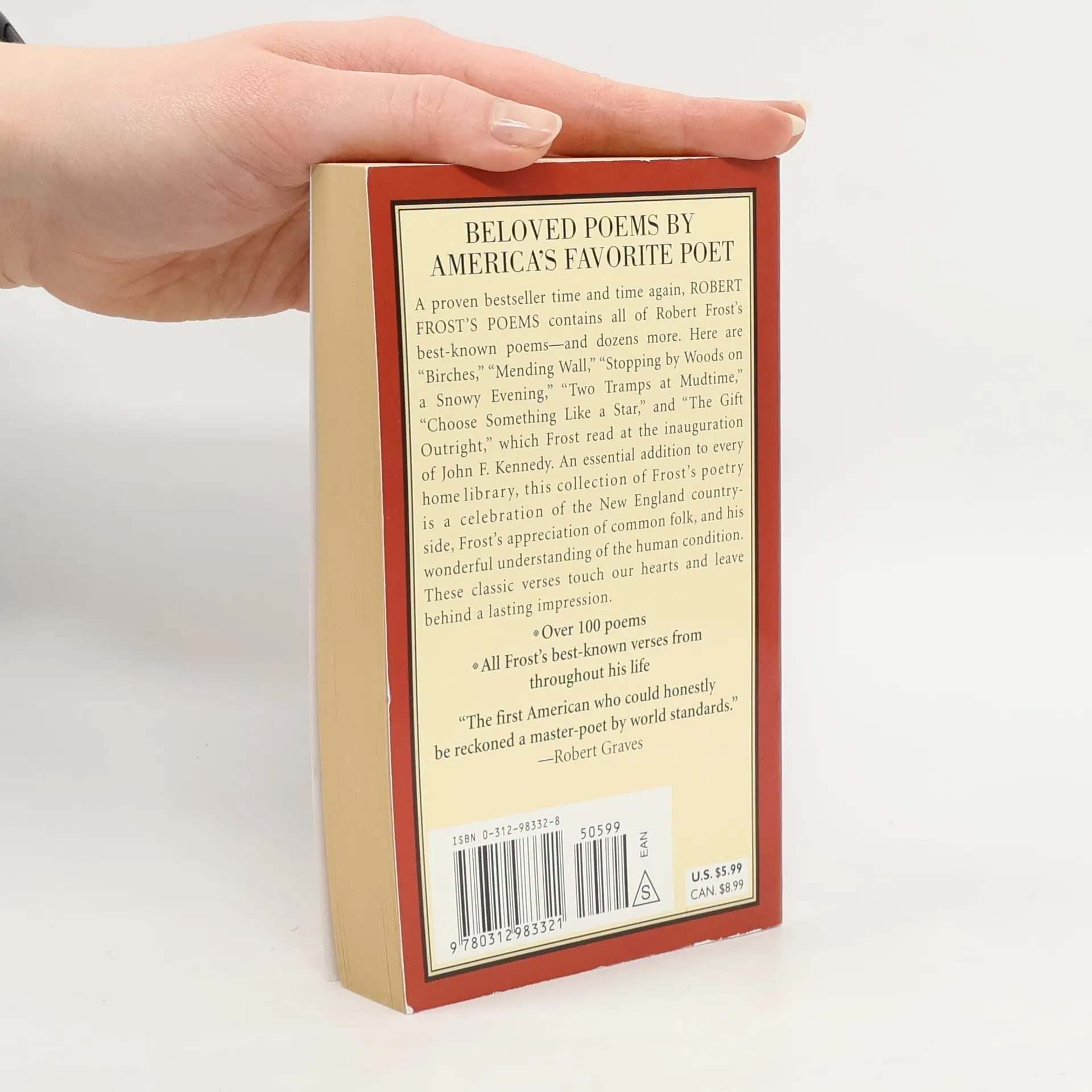 A proven bestseller time and time again, Robert Frost's Poems contains all of Robert Frost's best-known poems-and dozens more-in a portable anthology. Here are "Birches," "Mending Wall," "Stopping by Woods on a Snowy Evening," "Two Tramps at Mudtime," "Choose Something Like a Star," and "The Gift Outright," which Frost read at the inauguration of John F. Kennedy." An essential addition to every home library, Robert Frost's Poems is a celebration of the New England countryside, Frost's appreciation of common folk, and his wonderful understanding of the human condition. These classic verses touch our hearts and leave behind a lasting impression.* Over 100 poems* All Frost's best known verses from throughout his life