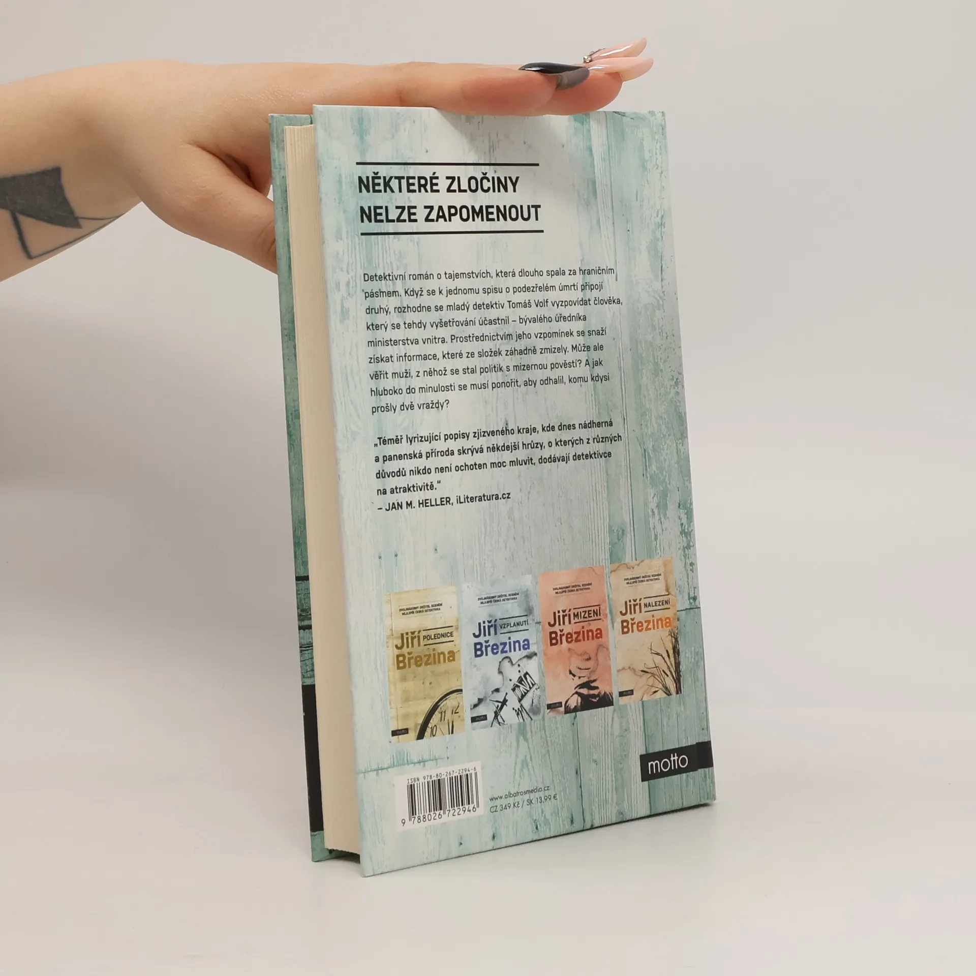 Některé zločiny nelze zapomenout První případ úspěšné krimi série s Tomášem Volfem od oceňovaného autora detektivek Mladý policista Tomáš Volf narazí při zkoumání promlčených vražd na podivné úmrtí, k němuž došlo v roce 1991 v zastrčené osadě Pasečky u rakouských hranic. Když se k jedné složce s podezřelou smrtí připojí druhá, rozhodne se Tomáš vyzpovídat člověka, který se tehdejšího vyšetřování přímo účastnil: bývalého úředníka ministerstva vnitra Ondřeje Novotného. Prostřednictvím jeho vzpomínek se Tomáš snaží získat informace, které ze spisů záhadně zmizely. Může ale věřit muži, ze kterého se stal politik s nevalnou pověstí? Jakou roli hrají v případu dějiny zapomenutého kraje? A jak hluboko do minulosti se musí Tomáš ponořit, aby odhalil, komu kdysi prošla nikoli jedna, ale rovnou dvě vraždy? Jiří Březina je dvojnásobným držitelem ceny Jiřího Marka. První dostal za svůj debut Na kopci (2013), druhou za třetí díl krimi série s Tomášem Volfem s názvem Vzplanutí (2019). Porotci, recenzenti i čtenáři u Jiřího Březiny oceňují zejména originální zápletky, autentičnost vyprávění i obratnou hru se čtenářskými očekáváními, která často vyústí v nečekané zvraty.