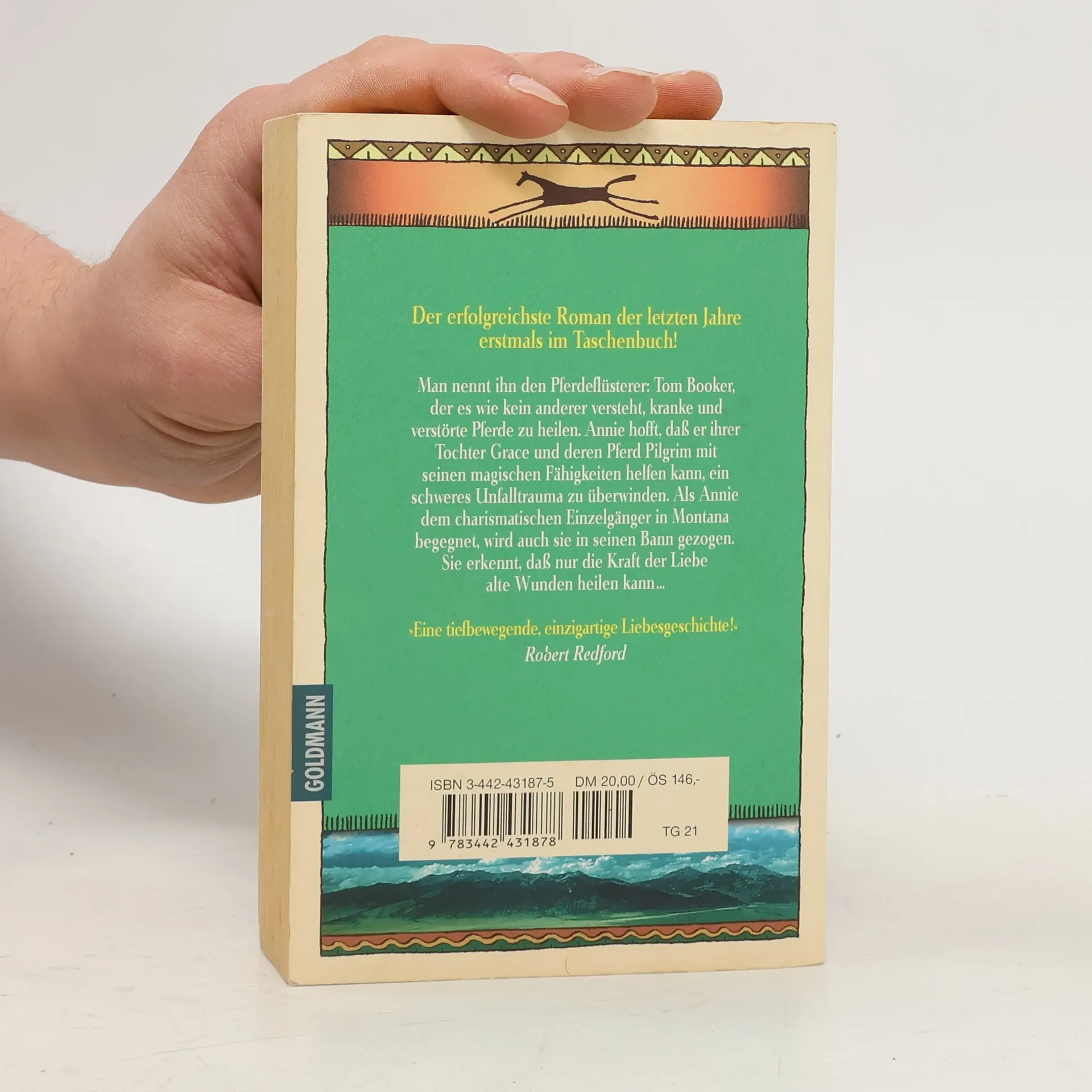 Man nennt ihn den Pferdeflüsterer: Tom Booker, den Einzelgänger, der es wie kein anderer versteht, kranke und verstörte Pferde zu heilen. Auch Annie hofft, daß er ihrer Tochter Grace und deren Pferd Pilgrim mit seinen magischen Fähigkeiten helfen kann, ein schweres Unfalltrauma zu überwinden. Die Begegnung mit dem Einzelgänger Tom Booker wird das Leben beider Frauen jedoch für immer verändern...