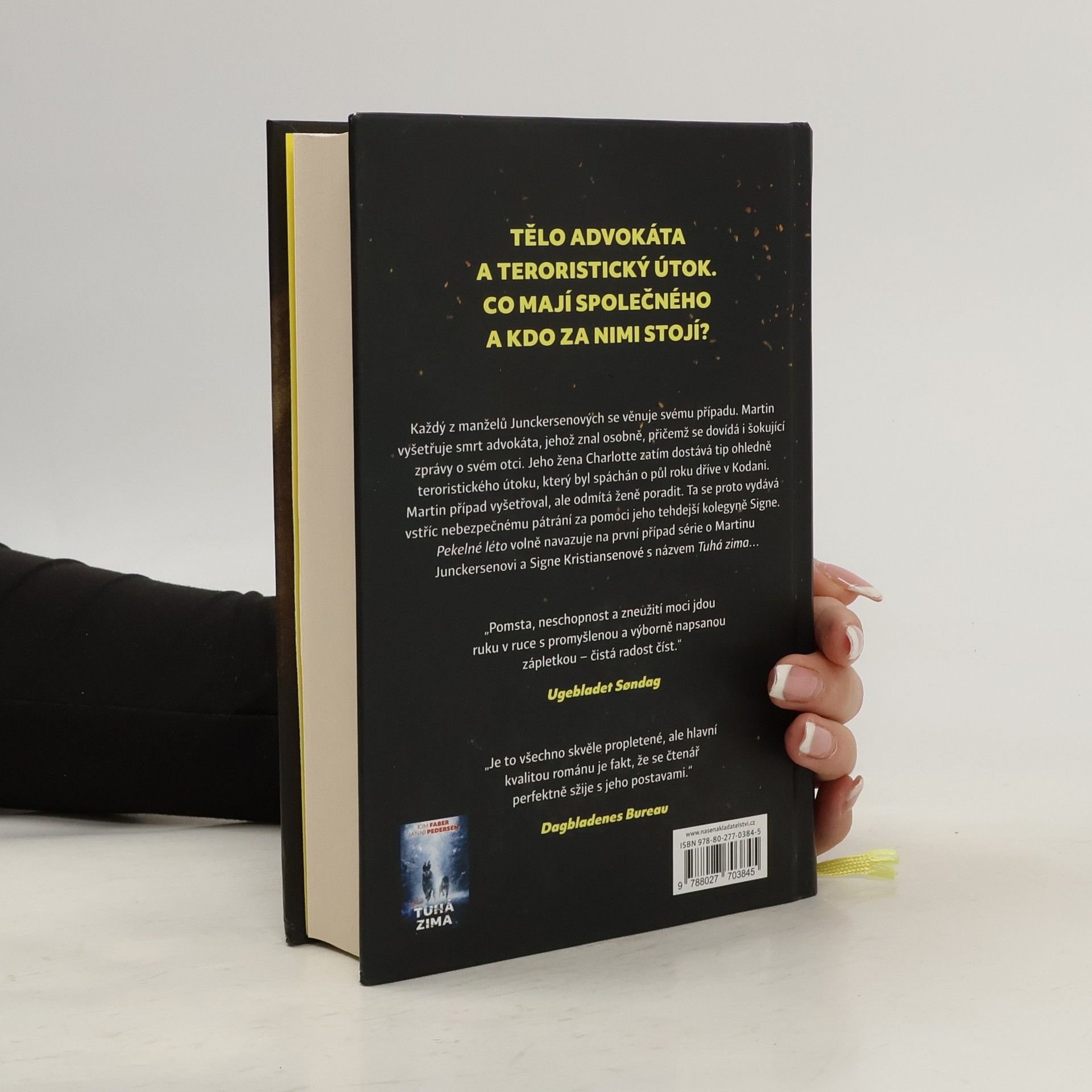 Je léto a příšerné vedro. Juncker i po smrti otce zůstává v Sandstedu a nedaří se mu nejlépe. V parku je nalezeno tělo místního advokáta a Juncker se pustí do vyšetřování. Ukáže se nejen, že mrtvého znal, ale dozví se i více o svém otci. Jeho žena Charlotte, investigativní novinářka, dostane anonymní tip, který naznačuje, že teroristickému útoku v Kodani, který zničil vánoční pohodu v Dánsku před půl rokem, se dalo zabránit. Charlotte zavětří dobrý příběh, obrátí se tedy na svého muže, který případ vyšetřoval. Juncker ví, co se tenkrát stalo, ale nechce ženě pomoci, protože má pocit, že by je to oba mohlo ohrozit. Nakonec novinářce začne s případem pomáhat Signe, Junckerova bývalá parťačka, která se vyšetřování také zúčastnila, ale na rozdíl od Junckera má pocit, že je potřeba pravdu odkrýt. Obě ženy začnou pátrat a dostanou se do dramatických situací. Pekelné léto volně navazuje na první případ série o Martinu Junckersenovi a Signe Kristiansenové Tuhá zima.