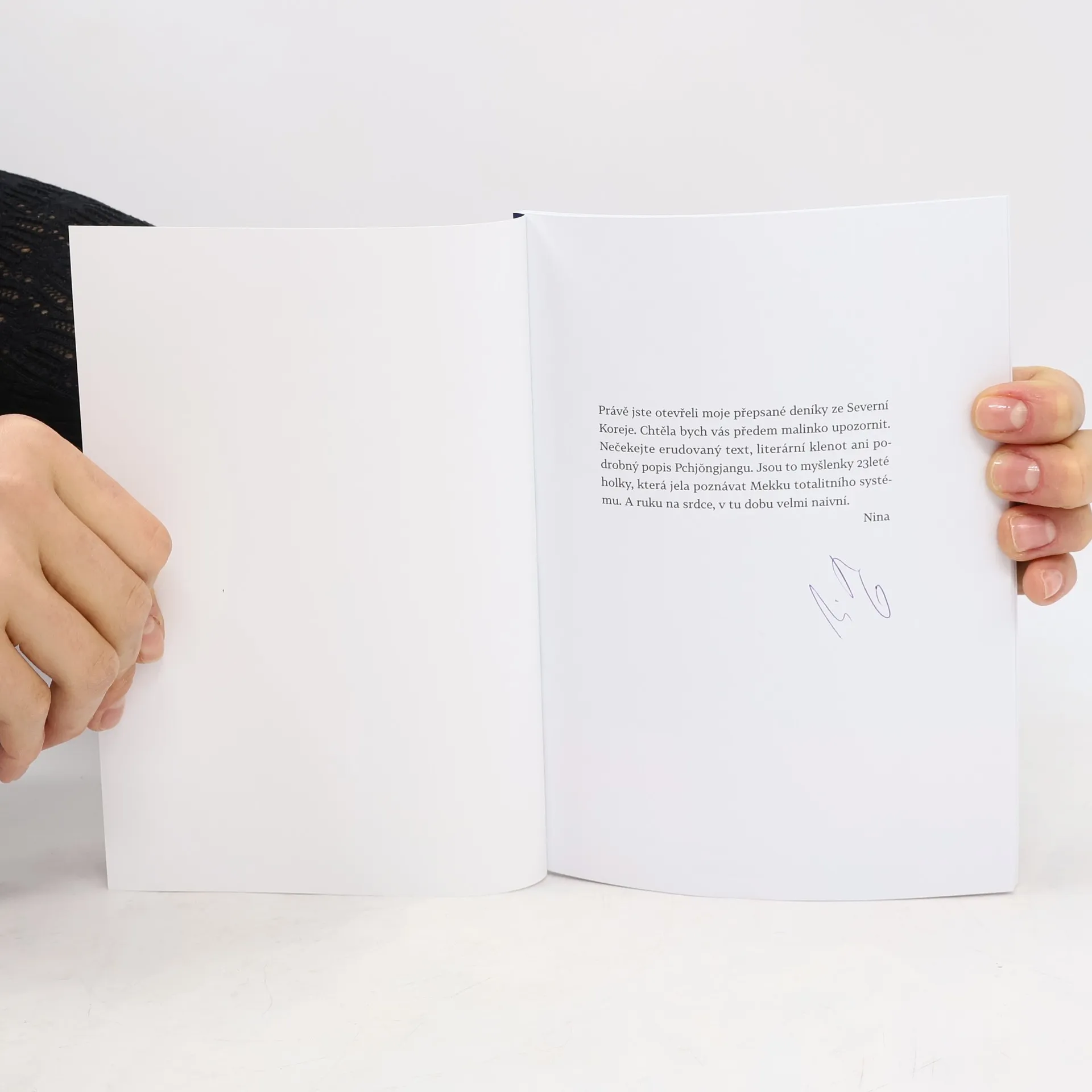 Právě jste otevřeli moje přepsané deníky ze Severní Koreje. Chtěla bych vás předem malinko upozornit. Nečekejte erudovaný text, literární klenot ani podrobný popis Pchjŏngjangu. Jsou to myšlenky 23leté holky, která jela poznávat Mekku totalitního systému. A ruku na srdce, v tu dobu velmi naivní.