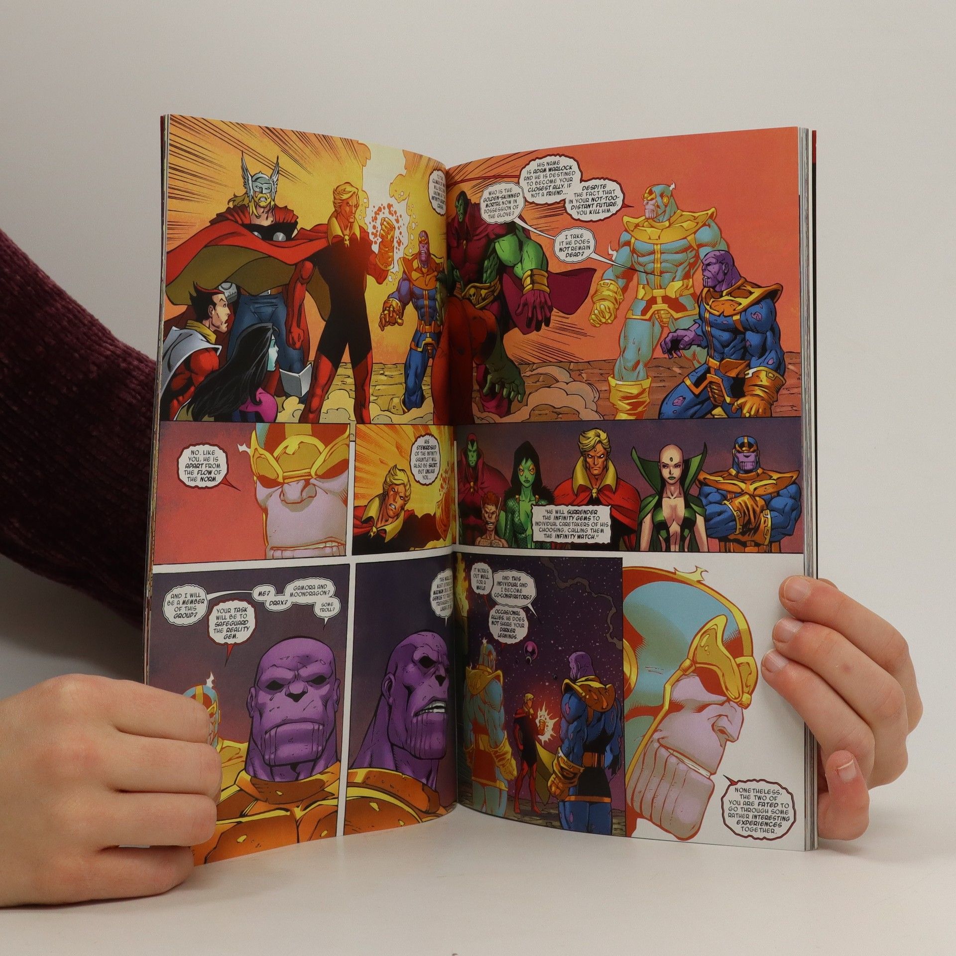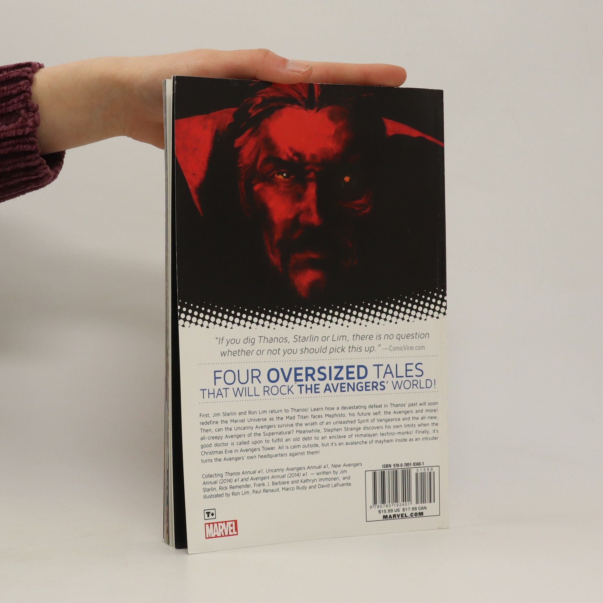 Four oversized tales that will rock the Avengers' world! First, Jim Starlin and Ron Lim return to Thanos! Learn how a devastating defeat in Thanos' past will soon redefine the Marvel Universe, as the Mad Titan faces Mephisto, his future self, the Avengers and more! Then, can the Uncanny Avengers survive the wrath of an unleashed Spirit of Vengeance, and the all-new, all-creepy Avengers of the Supernatural? Meanwhile, when Doctor Strange is called upon to fulfill an old debt to an enclave of Himalayan technomonks, even the good doctor may be beyond his limits! COLLECTING: Thanos Annual 1, Uncanny Avengers Annual 1, New Avengers Annual 1, Avengers Annual 1