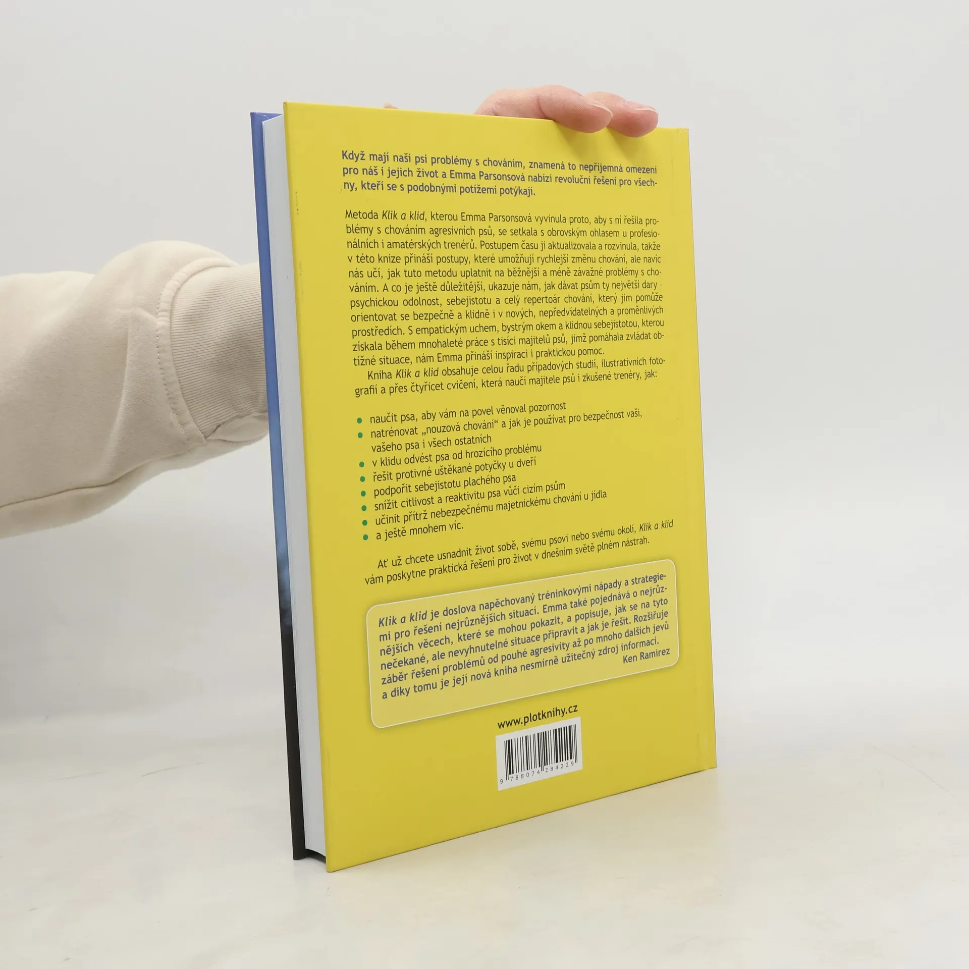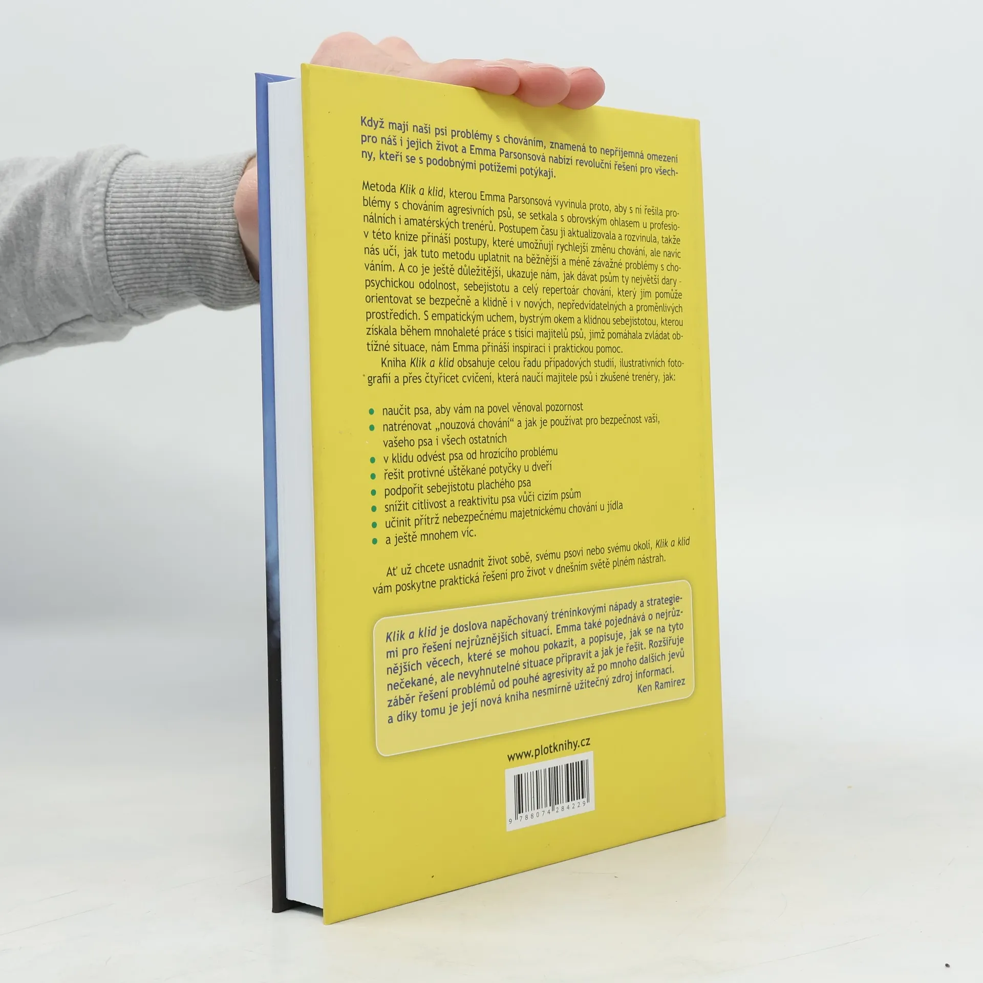 Text obsahuje postupy, které pomáhají řešit problematické chování různorodé povahy u psů, a to v rámci metody autorky "Klik a klid".Ukazuje, jak dávat psům ty největší dary – psychickou odolnost, sebejistotu a celý repertoár chování, který jim pomůže orientovat se bezpečně a klidně i v nových, nepředvídatelných a proměnlivých prostředích. Kniha obsahuje celou řadu případových studií, ilustrativních fotografií a přes čtyřicet cvičení, která naučí majitele psů i zkušené trenéry, jak: naučit psa, aby vám na povel věnoval pozornost, natrénovat „nouzová chování“.