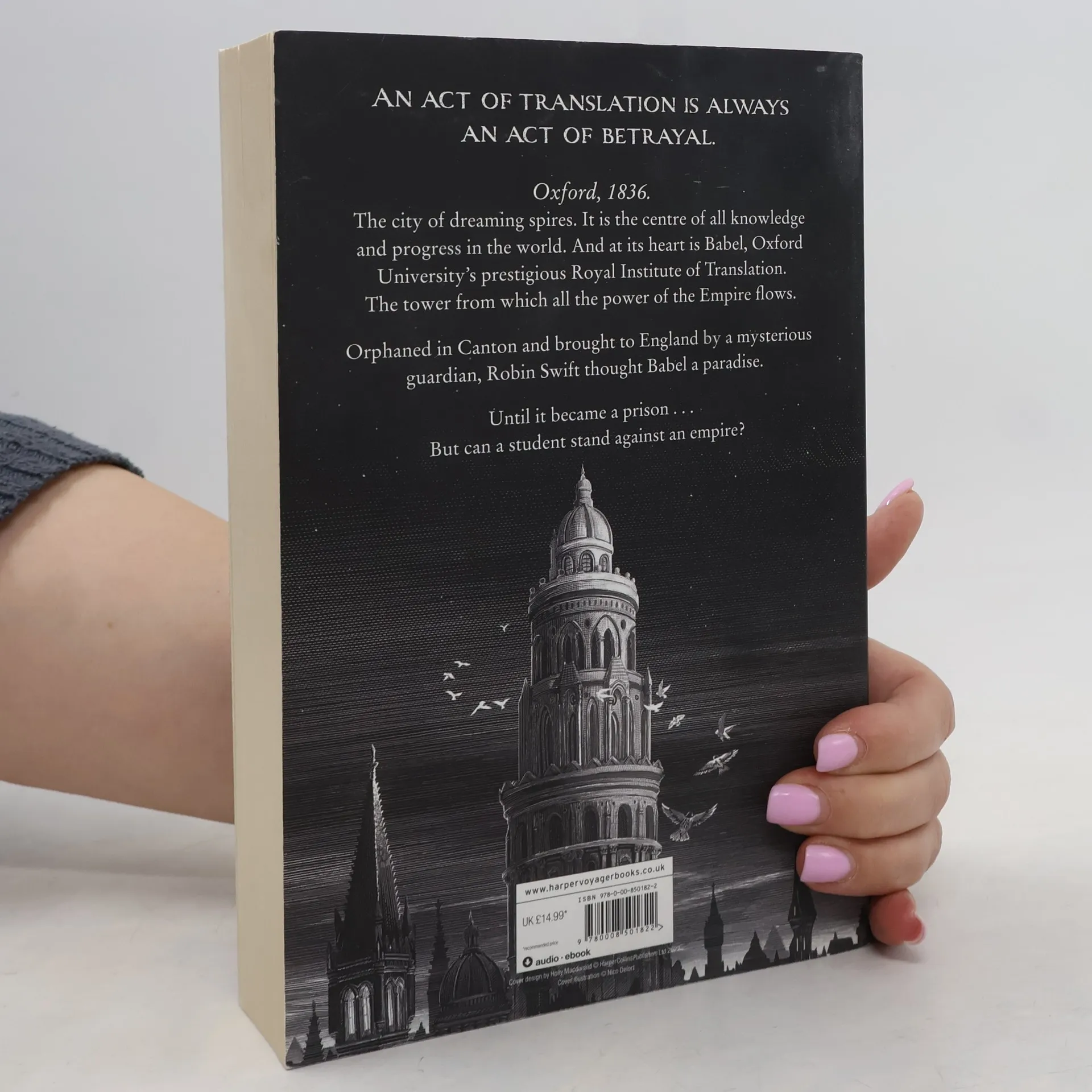 A new dark academic fantasy by the New York Times bestselling author of The Poppy War Traduttore, traditore: An act of translation is always an act of betrayal. Oxford, 1836. The city of dreaming spires. It is the centre of all knowledge and progress in the world. And at its centre is Babel, the Royal Institute of Translation. The tower from which all the power of the Empire flows. Orphaned in Canton and brought to England by a mysterious guardian, Babel seemed like paradise to Robin Swift. Until it became a prison... But can a student stand against an empire? An incendiary new novel from award-winning author R.F. Kuang about the power of language, the violence of colonialism, and the sacrifices of resistance.