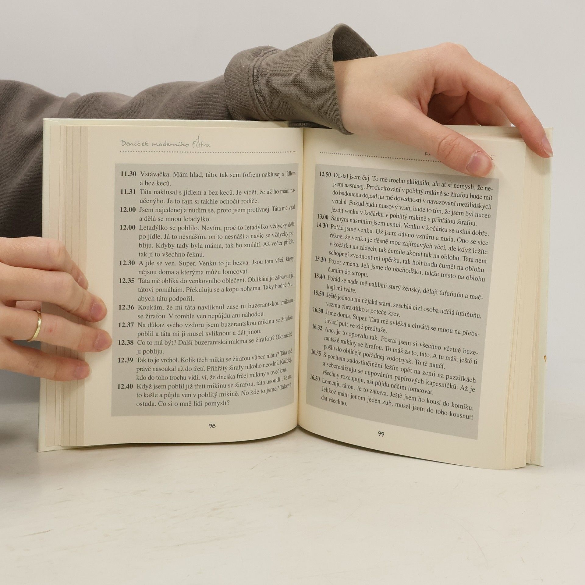 Deníček moderního fotra vznikl na základě úspěšného blogu, který Dominik Landsman založil s příchodem prvního dítěte. Věren názvu popisuje zážitky, situace a strasti obyčejného „chlápka“ odvedle, kterému se narodil první syn. Zprvu nezúčastněný fotr, který miminko zažívá trochu zdálky, se brzy stává „otcem na mateřské dovolené“ a s tím také začíná boj o přežití obou a zachování rodinného blaha. Nutno říct, že synek Čeněk je dítě velmi aktivní a také destruktivní. Každý Čeňkův pokrok většinou odnese vyčerpaný tatínek jizvami na duši i na těle, ale hlavní je, že dítě prospívá, ať už to stojí, co to stojí. V sympaticky drsňácké a humorné výpovědi moderního fotra se autor nebojí svěřit se s lecjakými trably a přináší výjimečný pohled současného muže na situace, které obvykle zažívají spíše ženy.