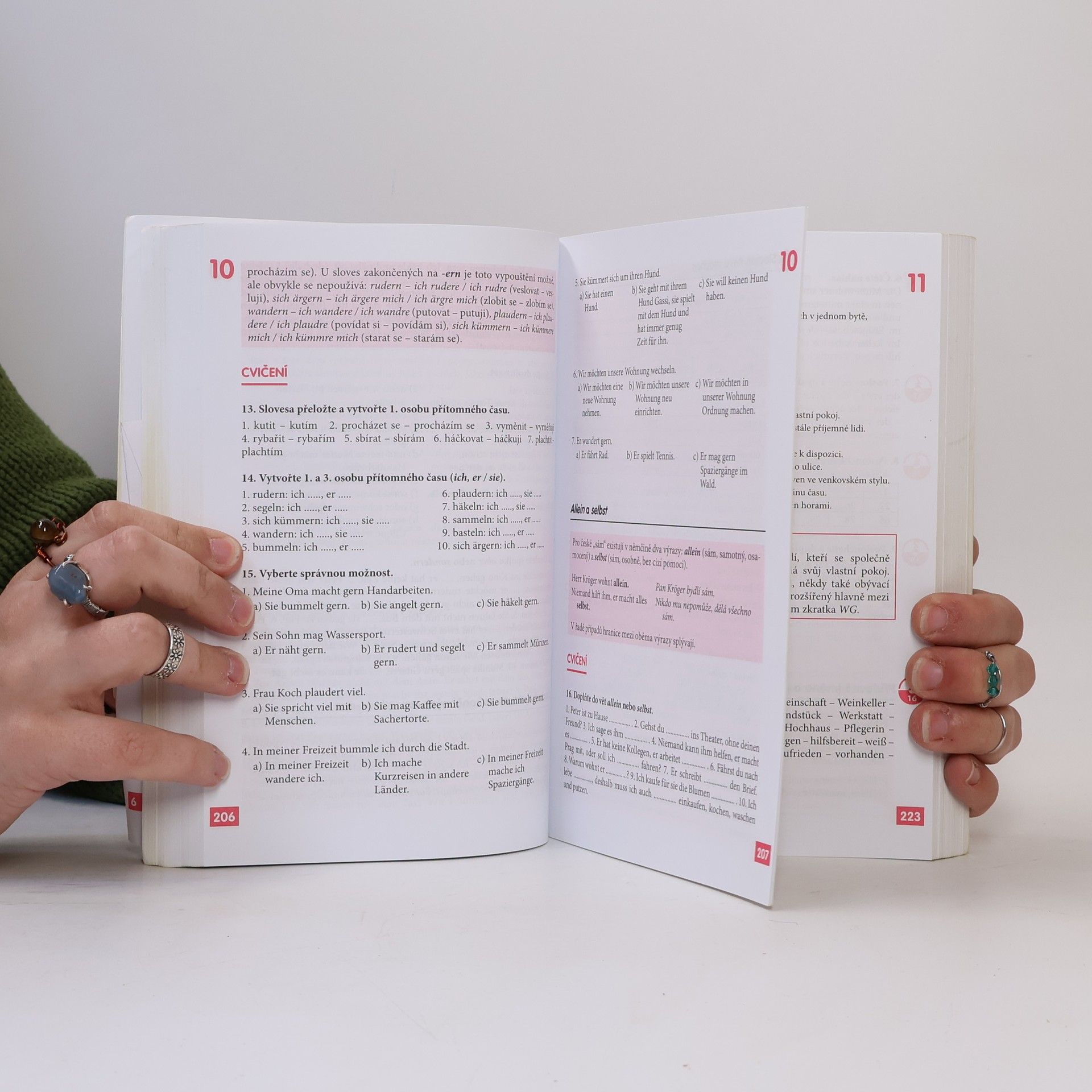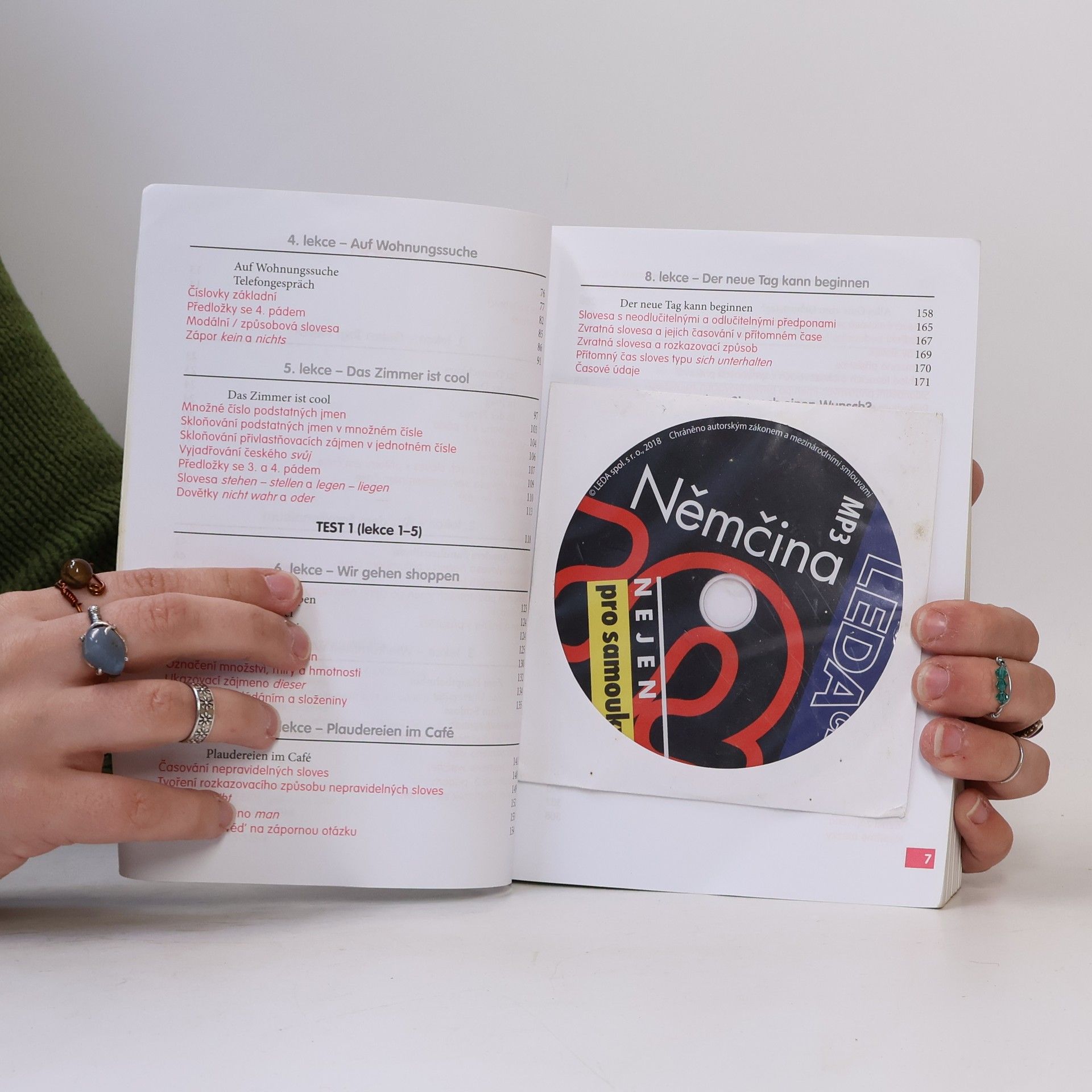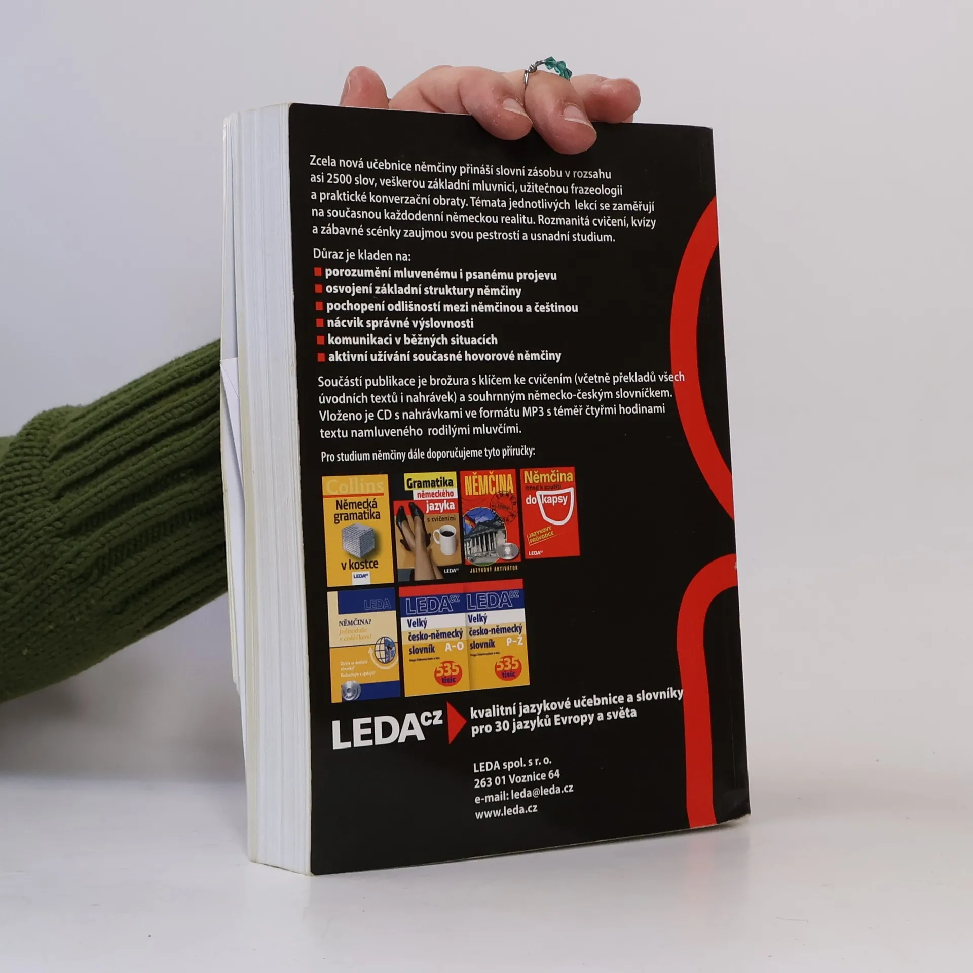 Zcela nová učebnice němčiny přináší slovní zásobu v rozsahu asi 2500 slov, veškerou základní mluvnici, užitečnou frazeologii a praktické konverzační obraty. Témata jednotlivých lekcí reflektují současný každodenní život se zaměřením na německou realitu. Rozmanitá cvičení, kvízy a zábavné scénky zaujmou svou pestrostí a usnadní studium. Důraz je kladen na: - porozumění mluvenému i psanému projevu - osvojení základní struktury němčiny - pochopení odlišností mezi němčinou a češtinou - nácvik správné výslovnosti - zvládnutí komunikace v běžných situacích - aktivní užívání současné hovorové němčiny Součástí publikace je brožura s klíčem ke cvičením (včetně překladů všech úvodních textů i nahrávek) a souhrnným německo-českým slovníčkem. Vložena jsou tři audio CD namluvená rodilými mluvčími. Určena je pro uživatele se vstupní úrovní A1 až B1 (začátečník až mírně pokročilý), dosáhnout lze stupně pokročilosti B1 až C1 (mírně pokročilý až pokročilý).