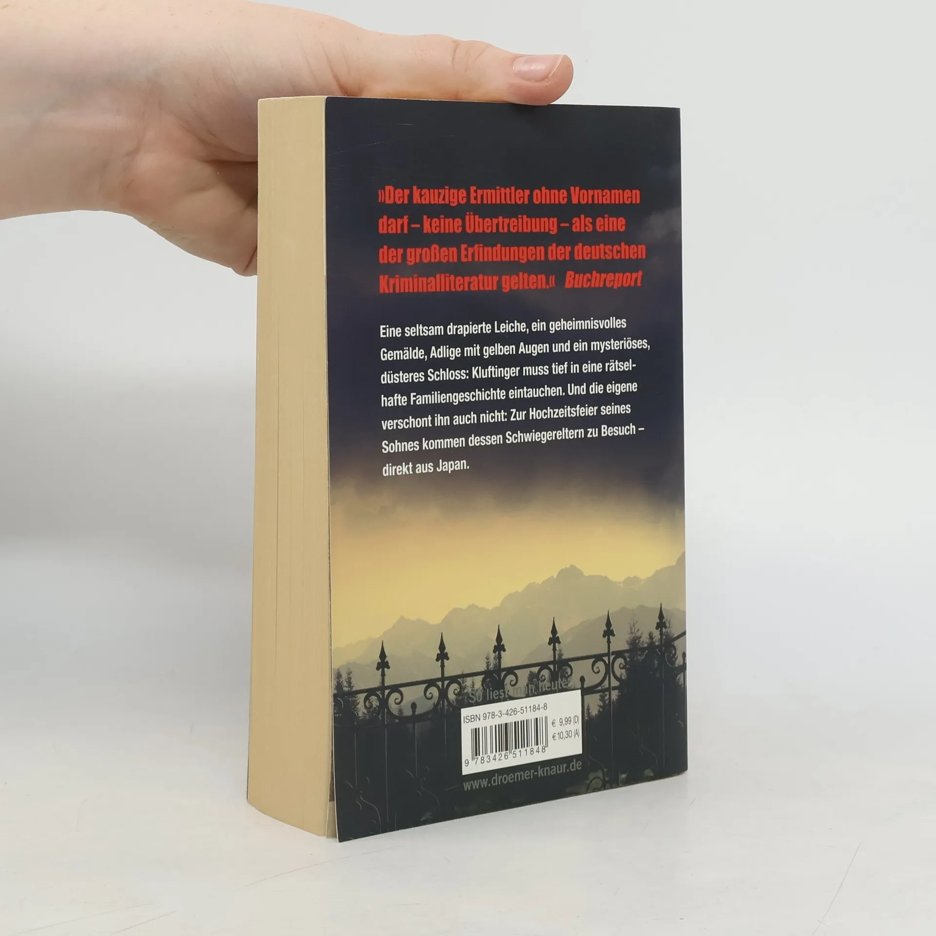 Kluftingers neuer Fall führt ihn ins Schloss in Bad Grönenbach, wo ihn allerlei Merkwürdiges erwartet: Die Frau des Barons wurde nicht nur ermordet, sondern auch noch wie auf einem uralten Familienporträt hergerichtet. Auf dem Gemälde ist ein Mann mit seltsam gelben Augen zu sehen. Und der Baron verschwindet immer wieder im schlosseigenen Märchenwald. Auch privat geht es bei Kluftinger märchenhaft zu: Sein Sohn heiratet, und zur Feier haben sich die Schwiegereltern aus Japan angesagt. Zum Glück lässt Kluftingers Intimfeind Langhammer nicht lange auf sich warten, um dem Kommissar bei dieser kulturellen Herausforderung zu helfen.
