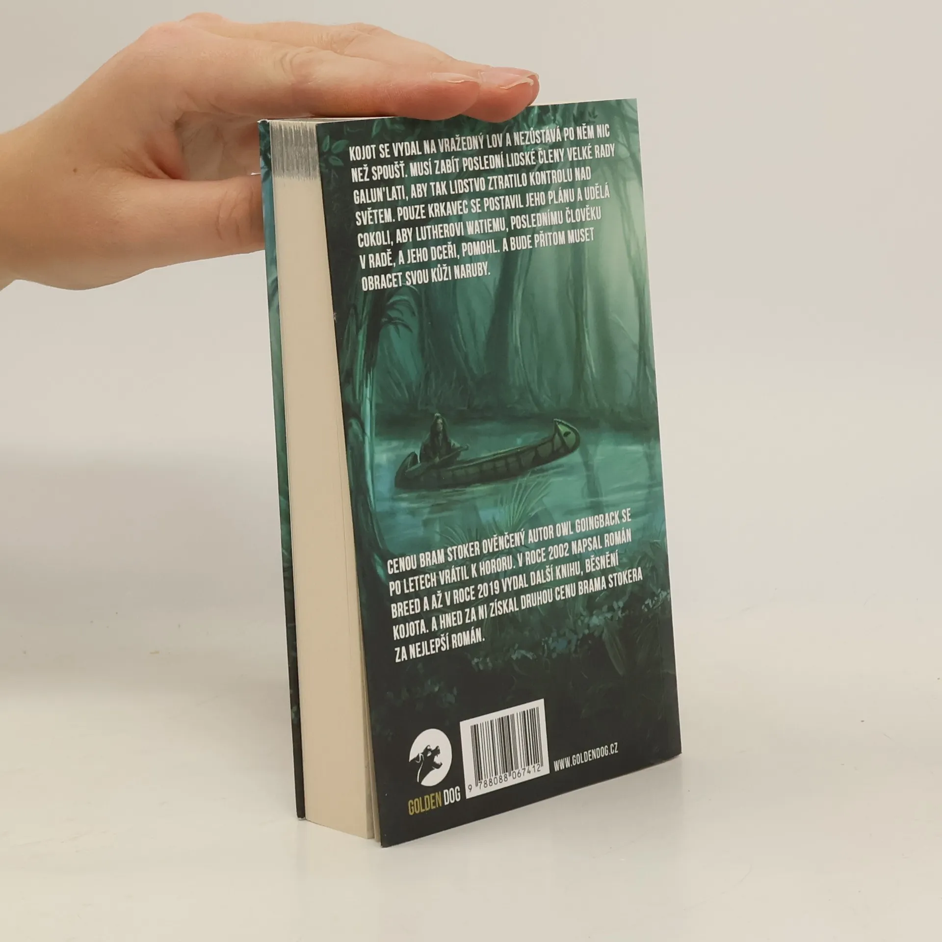 Cenou Bram Stoker ověnčený autor Owl Goingback se po letech vrátil k hororu. V roce 2002 napsal román Breed a až v roce 2019 vydal další knihu, Běsnění Kojota. A hned za ni získal druhou cenu Brama Stokera za nejlepší román. Kojot se vydal na vražedný lov a nezůstává po něm nic než spoušť. Musí zabít poslední lidské členy Velké rady Galun’lati, aby tak lidstvo ztratilo kontrolu nad světem. Pouze Krkavec se postavil jeho plánu a udělá cokoli, aby Lutherovi Watiemu, poslednímu člověku v Radě, a jeho dceři, pomohl. A bude přitom muset obracet svou kůži naruby.