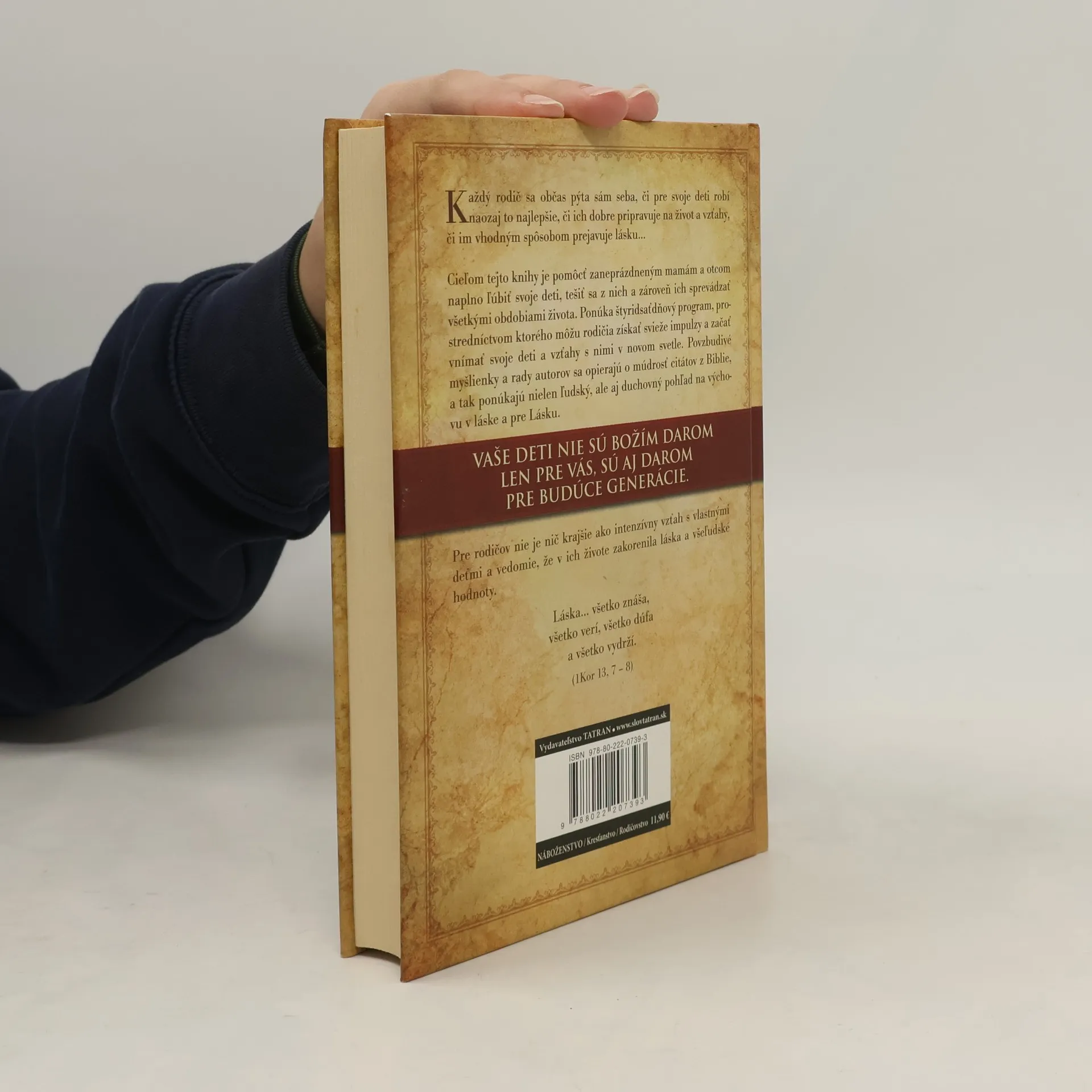 Každý rodič sa občas pýta sám seba, či pre svoje deti robí naozaj to najlepšie, či ich dobre pripravuje na život a vzťahy, či im vhodným spôsobom prejavuje lásku... Cieľom tejto knihy je pomôcť zaneprázdneným mamám a otcom naplno ľúbiť svoje deti, tešiť sa z nich a zároveň ich sprevádzať všetkými obdobiami ich života. Ponúka štyridsať dňový program, prostredníctvom ktorého môžu rodičia získať svieže impulzy a začať vnímať svoje deti a vzťahy s nimi v novom svetle. Povzbudivé myšlienky a rady autorov sa opierajú o múdrosť citátov z Biblie, a tak ponúkajú nielen ľudský, ale aj nadprirodzený pohľad na výchovu v láske a pre Lásku.