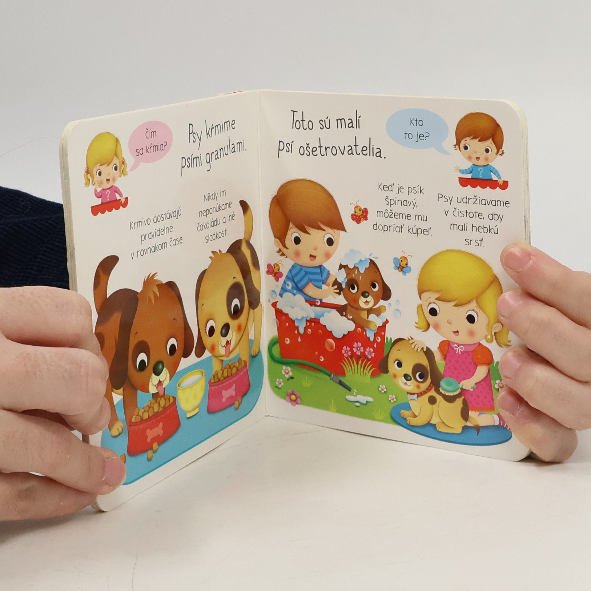 Knižka plná roztomilých ilustrácií umožní deťom nazrieť do života psíkov - spoznajú, čím ich kŕmime, čo všetko sa musia naučiť a ako sa starajú o svoje šteniatka.