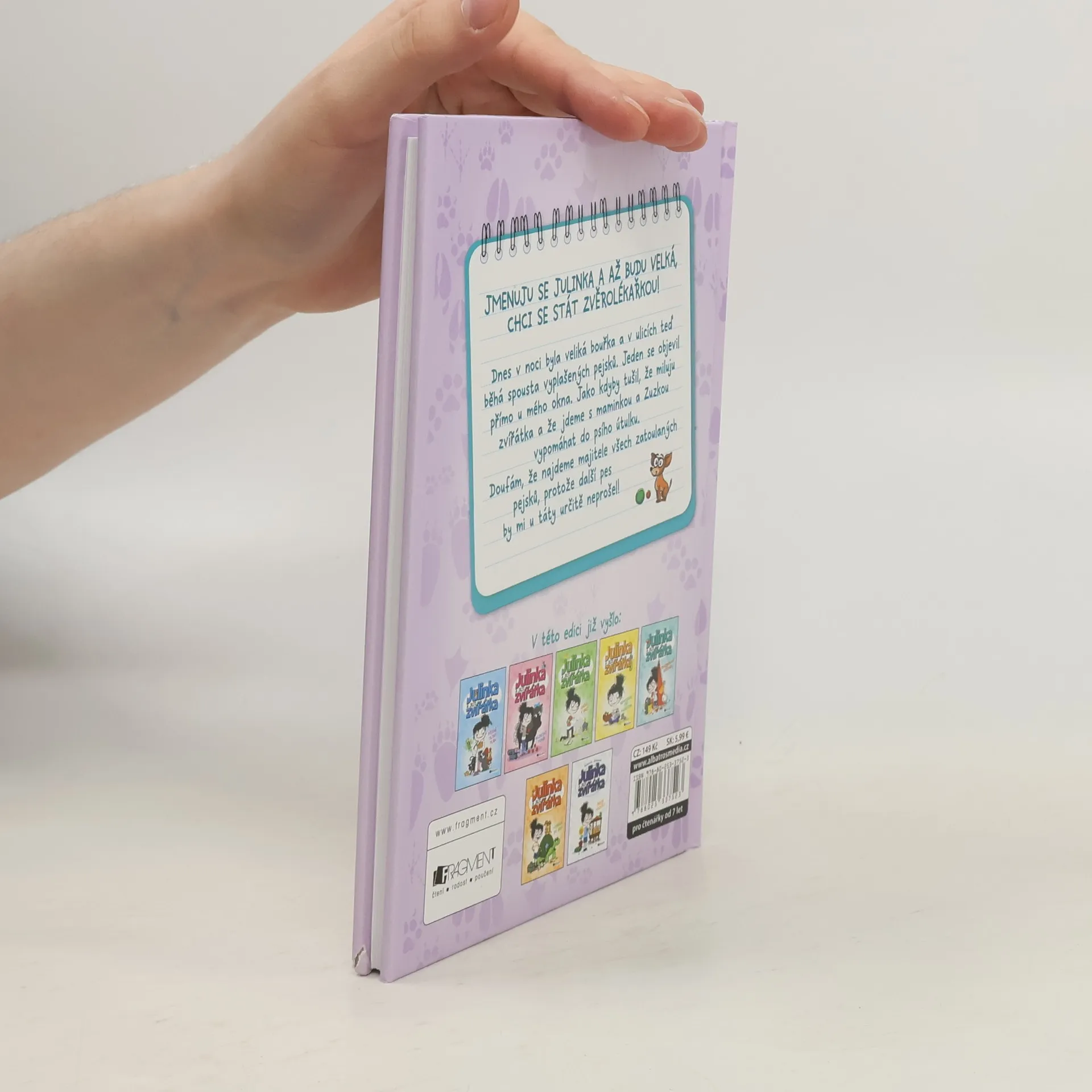 Jmenuju se Julinka a až budu velká, chci se stát zvěrolékařkou. Dnes v noci byla veliká bouřka a v ulicích teď běhá spousta vyplašených pejsků. Jeden se objevil přímo u mého okna. Jako kdyby tušil, že miluju zvířátka a že jdeme s maminkou a Zuzkou vypomáhat do psího útulku. Doufám, že najdeme majitele všech zatoulaných pejsků, protože další pes by mi u táty určitě neprošel!