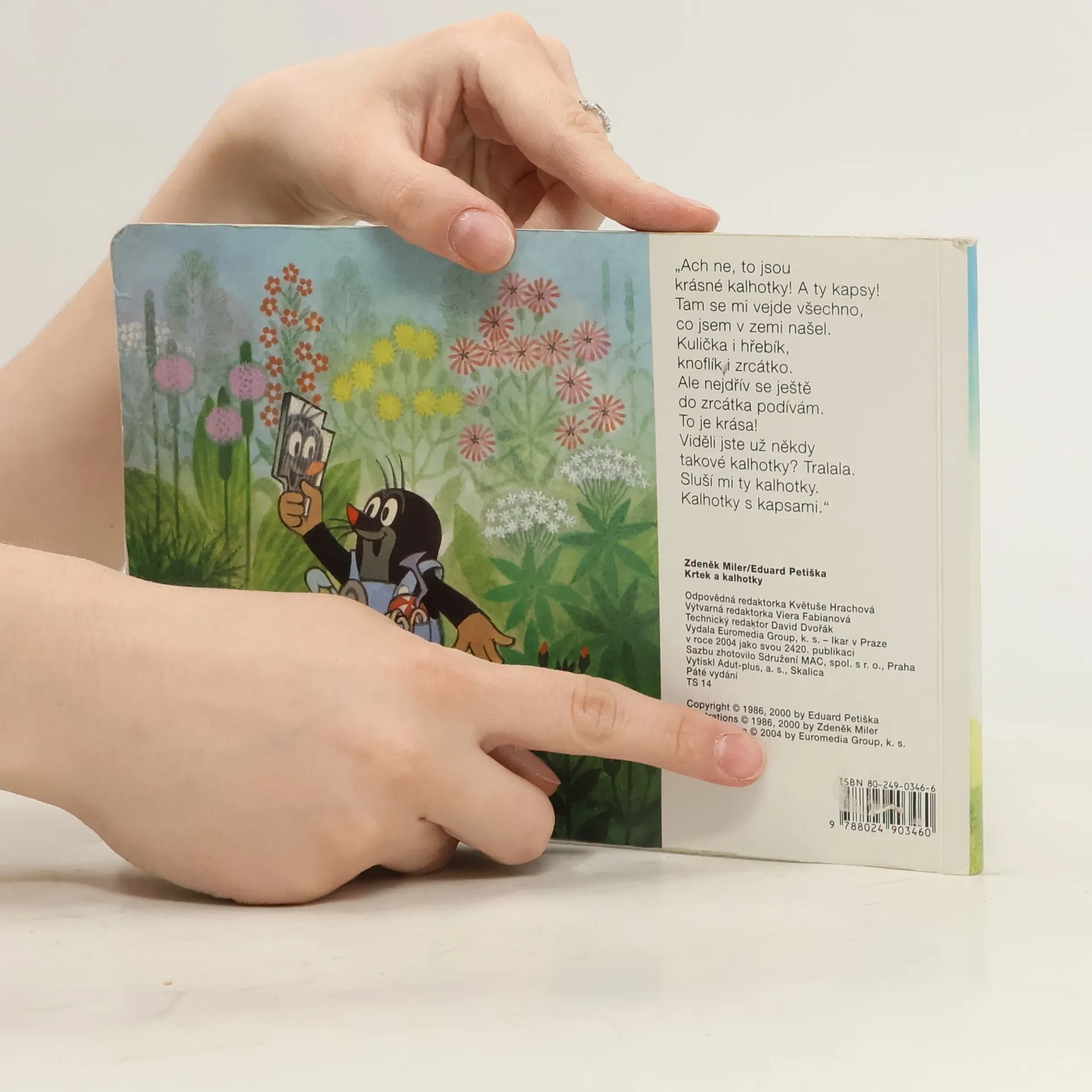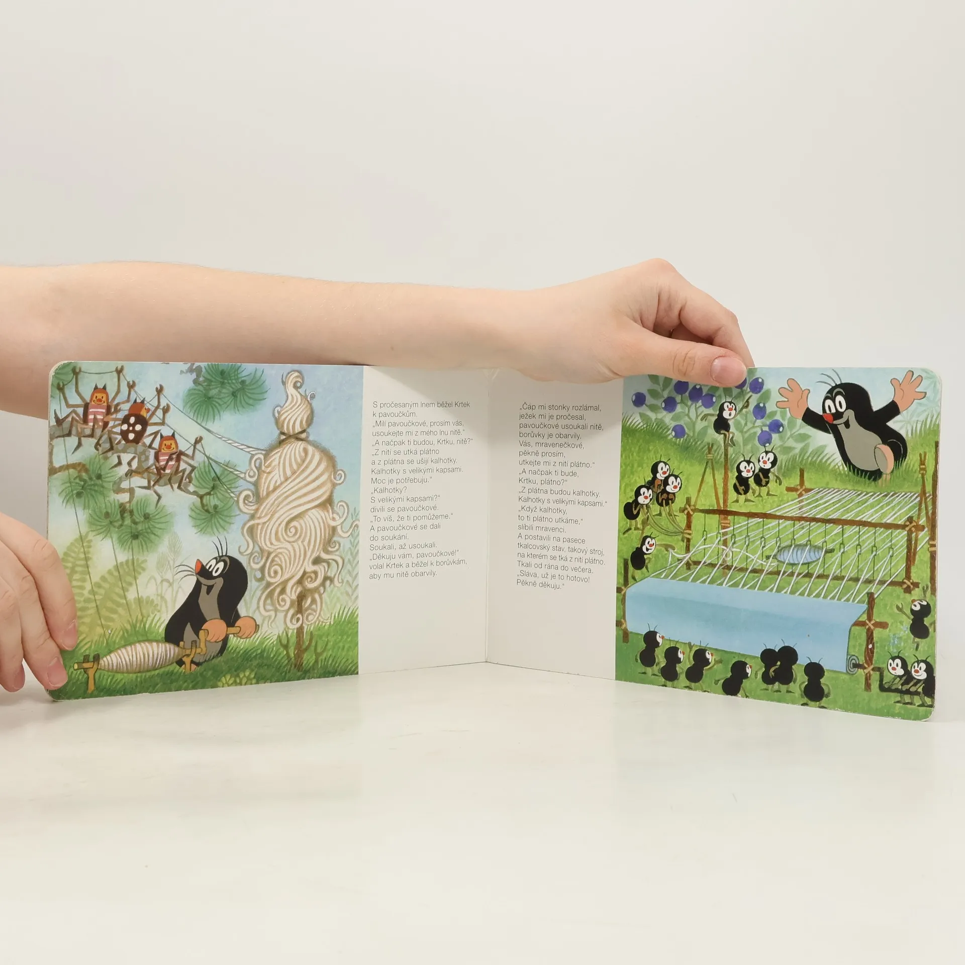 Klasické leporelo pro předškolní děti. Krtek a jeho kamarádi - zajíček, medvěd, myška a žabka, prožívají velká dobrodružství v lese, na louce a ve vodě. Krtek si navíc ušije s pomocí dalších zvířátek nádherné kalhotky.