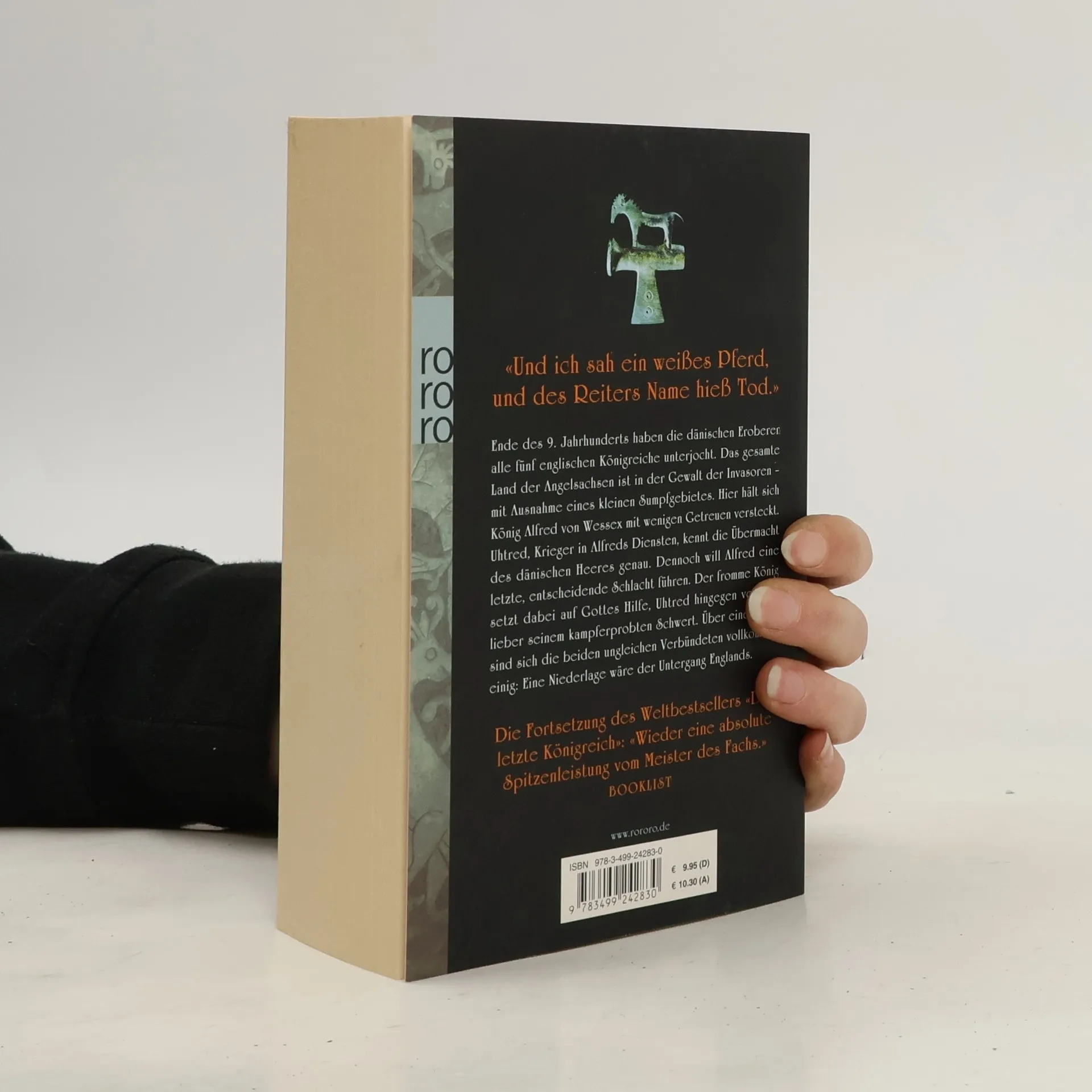 Und ich sah ein weißes Pferd, und des Reiters Name hieß Tod Ende des 9. Jahrhunderts haben die dänischen Eroberer alle fünf englischen Königreiche unterjocht. Das gesamte Land der Angelsachsen ist in der Gewalt der Invasoren – mit Ausnahme eines kleinen Sumpfgebietes. Hier hält sich König Alfred von Wessex mit wenigen Getreuen versteckt. Uhtred, Krieger in Alfreds Diensten, kennt die Übermacht des dänischen Heeres genau. Dennoch will Alfred eine letzte, entscheidende Schlacht führen. Der fromme König setzt dabei auf Gottes Hilfe, Uhtred hingegen vertraut lieber seinem kampferprobten Schwert. Über eines aber sind sich die beiden ungleichen Verbündeten vollkommen einig: Eine Niederlage wäre der Untergang Englands. Die Uhtred-Romane, Band 2