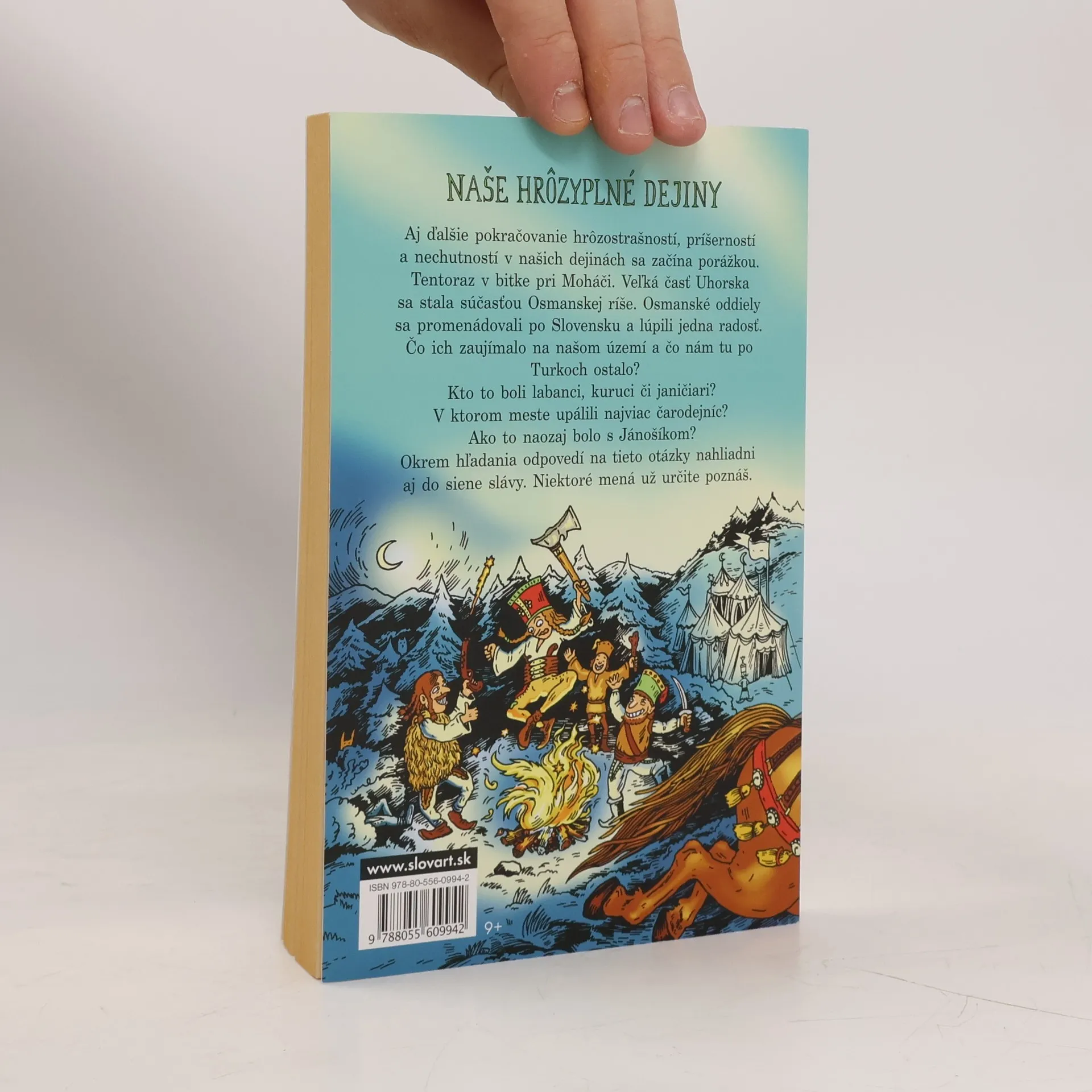 Ďalší diel edície Naše hrôzyplné dejiny čitateľom overeným odľahčeným spôsobom približuje udalosti, ktoré nasledovali po bitke pri Moháči. Detskí milovníci histórie sa dozvedia nielen to, ako Turci drancovali krajinu, ale aj to, za čo všetko im vďačíme. Pri čítaní si budú lámať hlavu nad tým, kto boli kuruci a kto labanci, spoznajú, prečo sa artikulárne kostoly volajú tak, ako sa volajú, zistia, v ktorom slovenskom meste bolo upálených najviac čarodejníc, v akej bitke zomreli štyria členovia Esterháziovského rodu. No a na záver nahliadnu do slovenskej siene slávy. Pútavý text Róberta Beutelhausera je prešpikovaný šťavnatými ilustráciami Katky Slaninkovej, ktoré rúcajú školské predstavy o histórii.