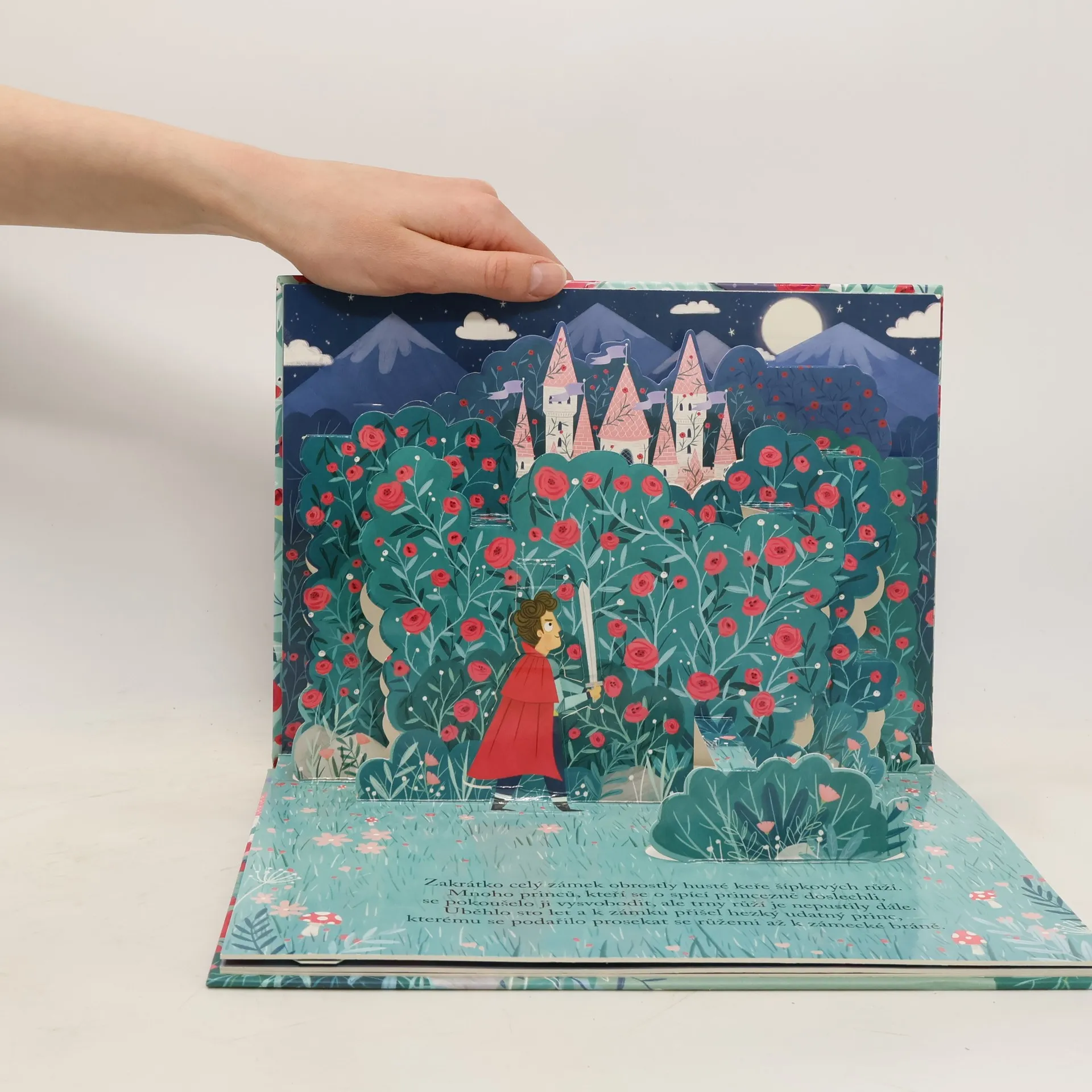 Publikace s prostorovými obrázky a známou pohádkou o spící krasavici a zlé sudbě.
