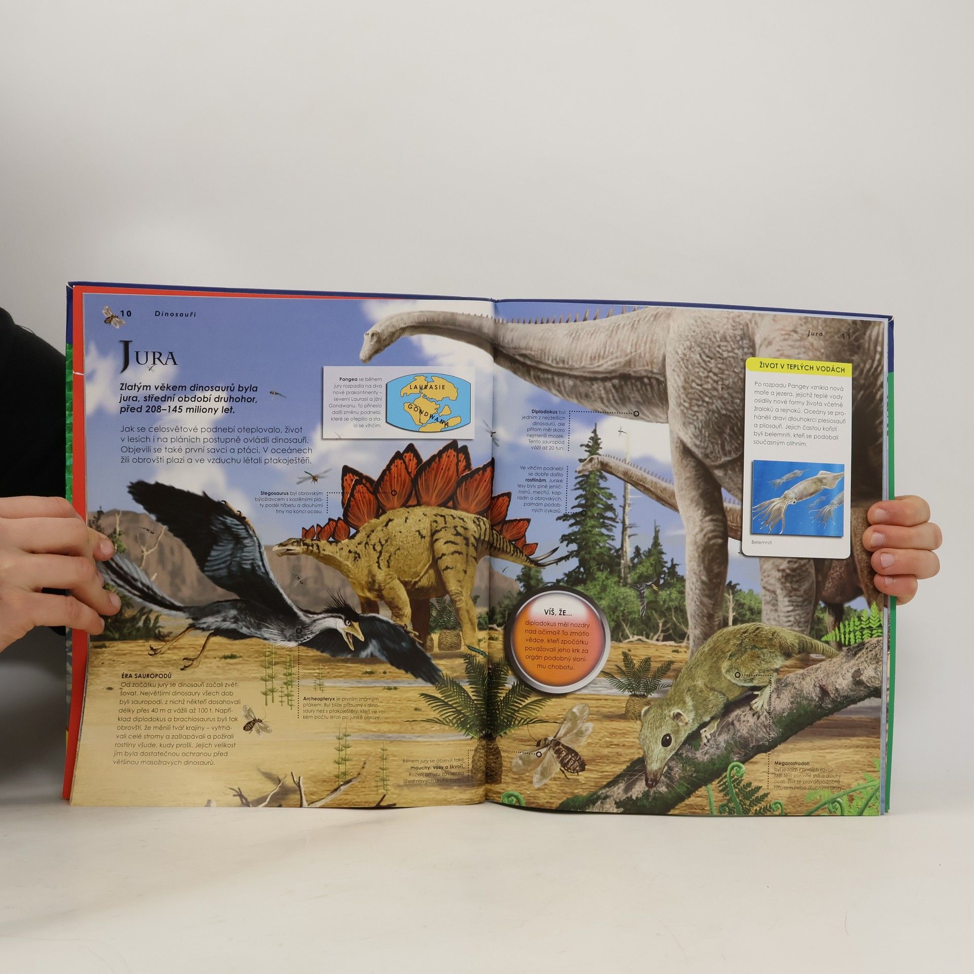 Knížka Dinosauři podává množství zajímavých informací ze života prehistorických živočichů, kteří jsou rozděleni do kapitol podle toho, v jakém období žili, čím se vyznačovali či v jakém prostředí – ve vzduchu, na zemi či ve vodě – se pohybovali. Četné ilustrace přibližují čtenáři pravděpodobnou podobu dinosaurů, přehledné tabulky poskytují základní fakta o daném živočichovi. Součástí knihy je plakát s typickými zástupci dinosaurů a stránka zábavných samolepek.