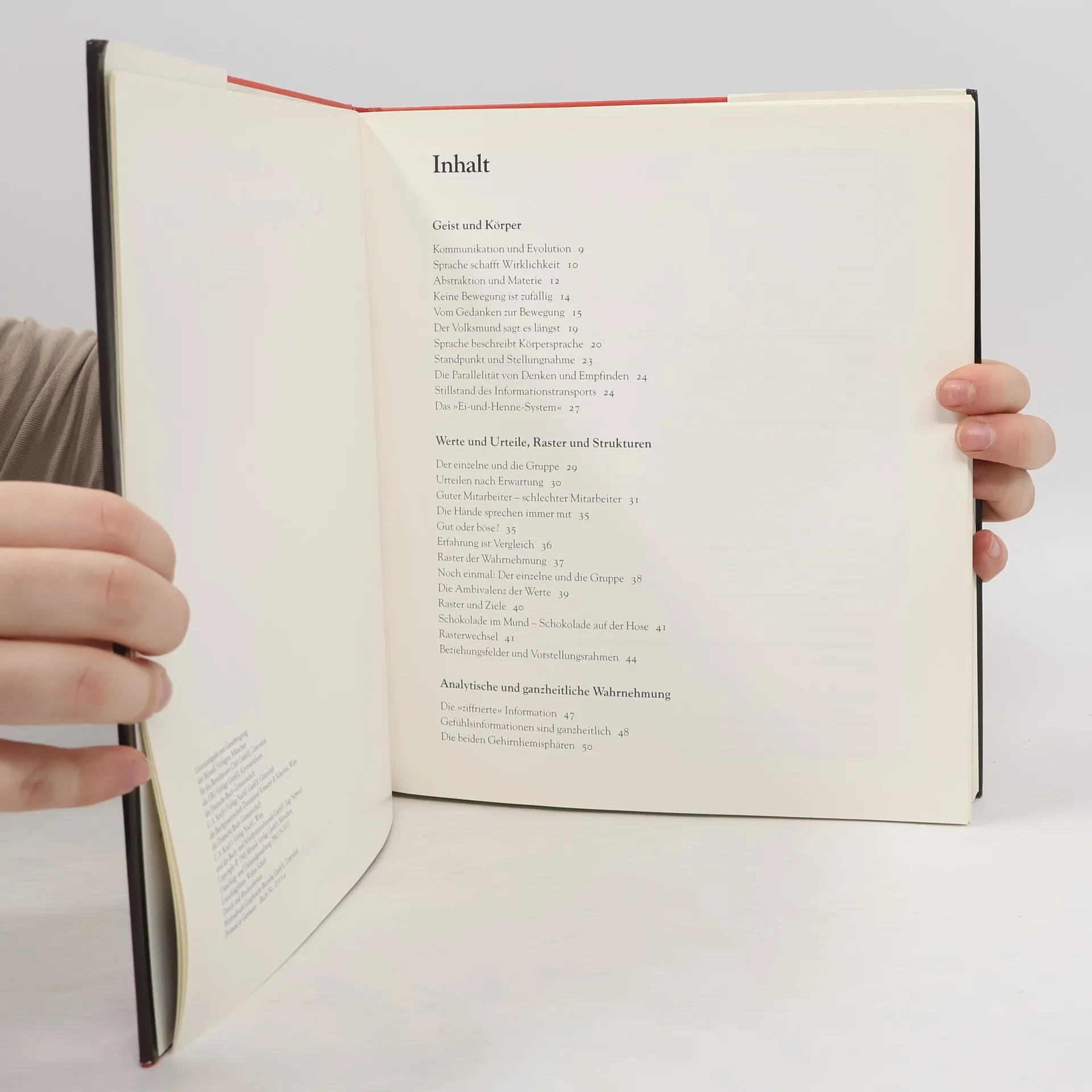 Schnitt verstaubt. Im Inneren in Ordnung. Ganzheitliche Kommunikation in Beruf und Sam Molcho spricht in diesem Buch über den Dialog zwischen Geist, Gefühl und Körper und über deren unauflöslichen Zusammenhang. Er warnt davor, Gefühle zu unterschätzen, da sie unsere Entscheidungen mehr beeinflussen als rationales Denken. Er zeigt Möglichkeiten, eine Brücke zwischen Ratio und Emotion zu bauen und versucht dem Leser anhand vieler modellhafter Beispiele den Weg zu Dialogfähigkeit und harmonischer Kommunikation zu eröffnen. Holistic communication in work and everyday Sam Molcho, in this book, talks about the dialogue between mind, feeling, and body, and their indissoluble connection. He warns against underestimating feelings as they influence our decisions more than rational thinking. It shows possibilities to build a bridge between ratio and emotion and tries to open the way to dialogue and harmonious communication with the reader through many model examples.