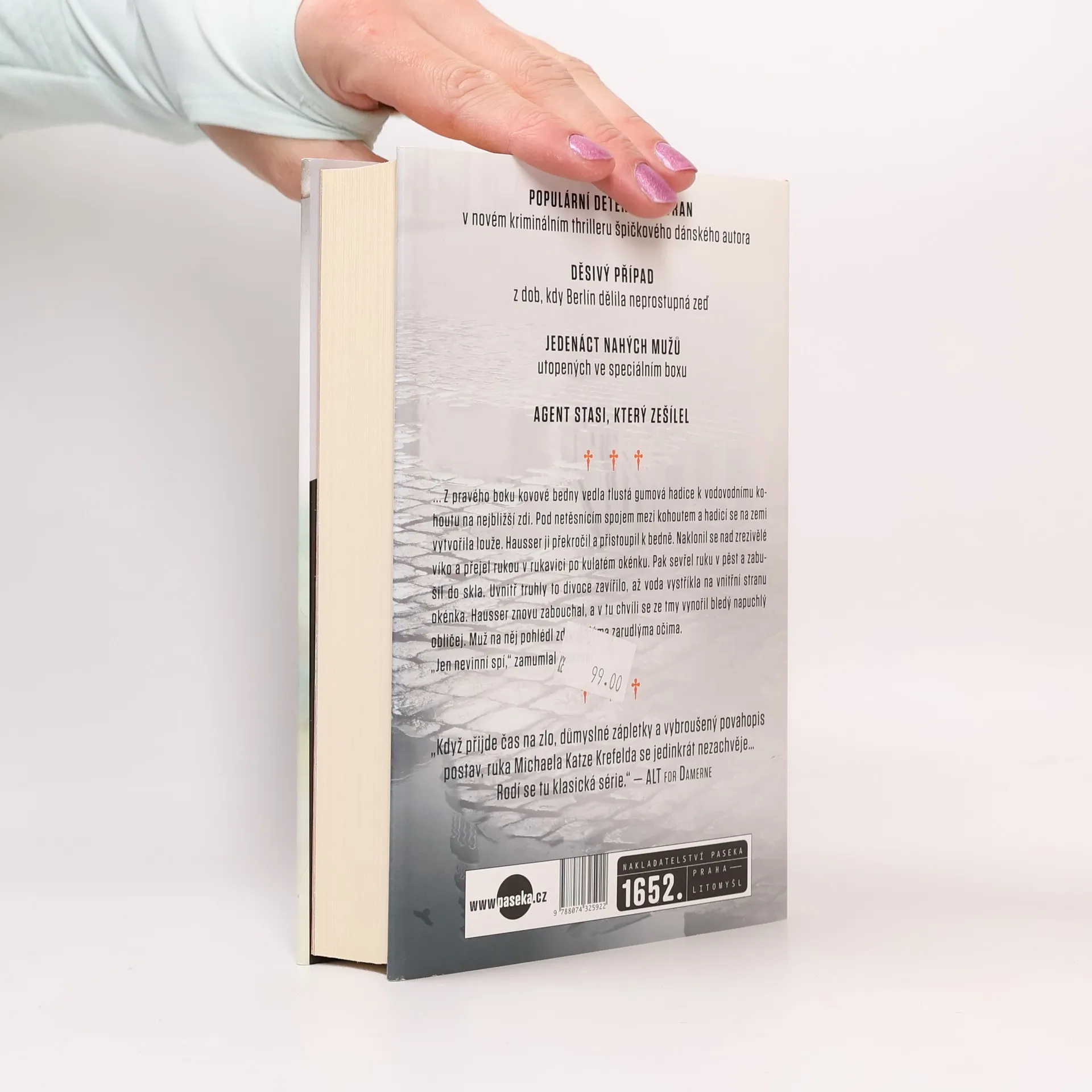 Populární detektiv Havran v novém kriminálním thrilleru dánského bestsellerového autora. Jedenáct nahých mužů utopených ve speciálních boxech. Děsivý případ z dob NDR. Odhalená nevěra a agent Stasi, který zešílel. Za Thomasem Ravnsholdtem, přezdívaným Havran, přichází mladá krásná Louise s žádostí, aby vypátral jejího zmizelého bratra. Osamělého expolicistu si podmaní nejen její půvaby, ale i naléhavost prosby. A tak se vydává do Berlína vstříc vzrušujícímu dobrodružství s neodolatelnou ženou… a sérii nepředstavitelně zvrácených zločinů.