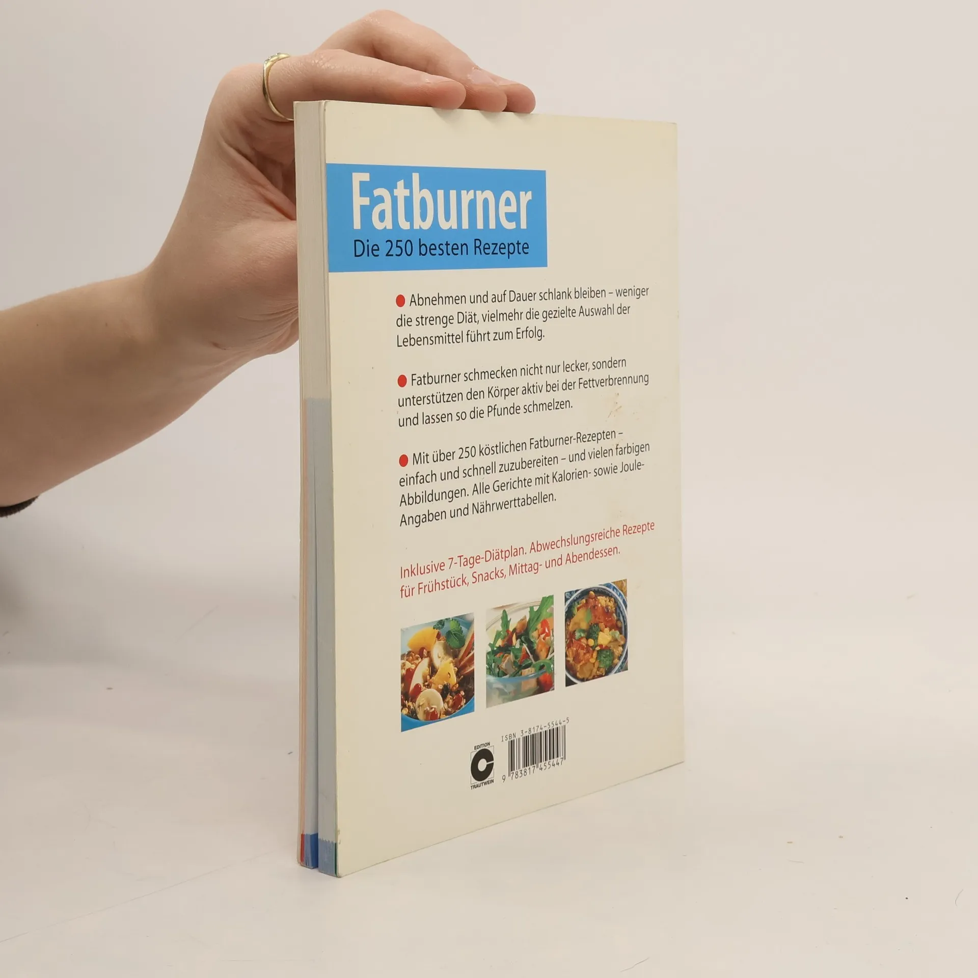 Mit speziellen Fatburner-Rezepten, die darauf angelegt sind, die Fettverbrennung anzukurbeln, wird es ganz einfach Pfunde zu verlieren und geundheitsbewusster zu leben. Mit 250 Rezepten wird eine große Vielfalt von Variationsmöglichkeiten geboten. Zusätzlich bietet das Buch einen 7-Tage-Diätplan, der den Einstieg in die gesunde Ernährung mit Fatburnern erleichtert. Wissenswertes zu den Nährstoffen und wichtigsten Fatburnen und deren Funktion ergänzen das Kochbuch.