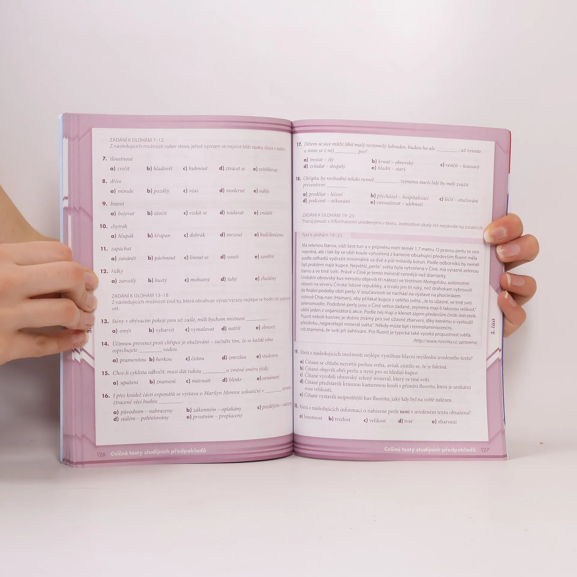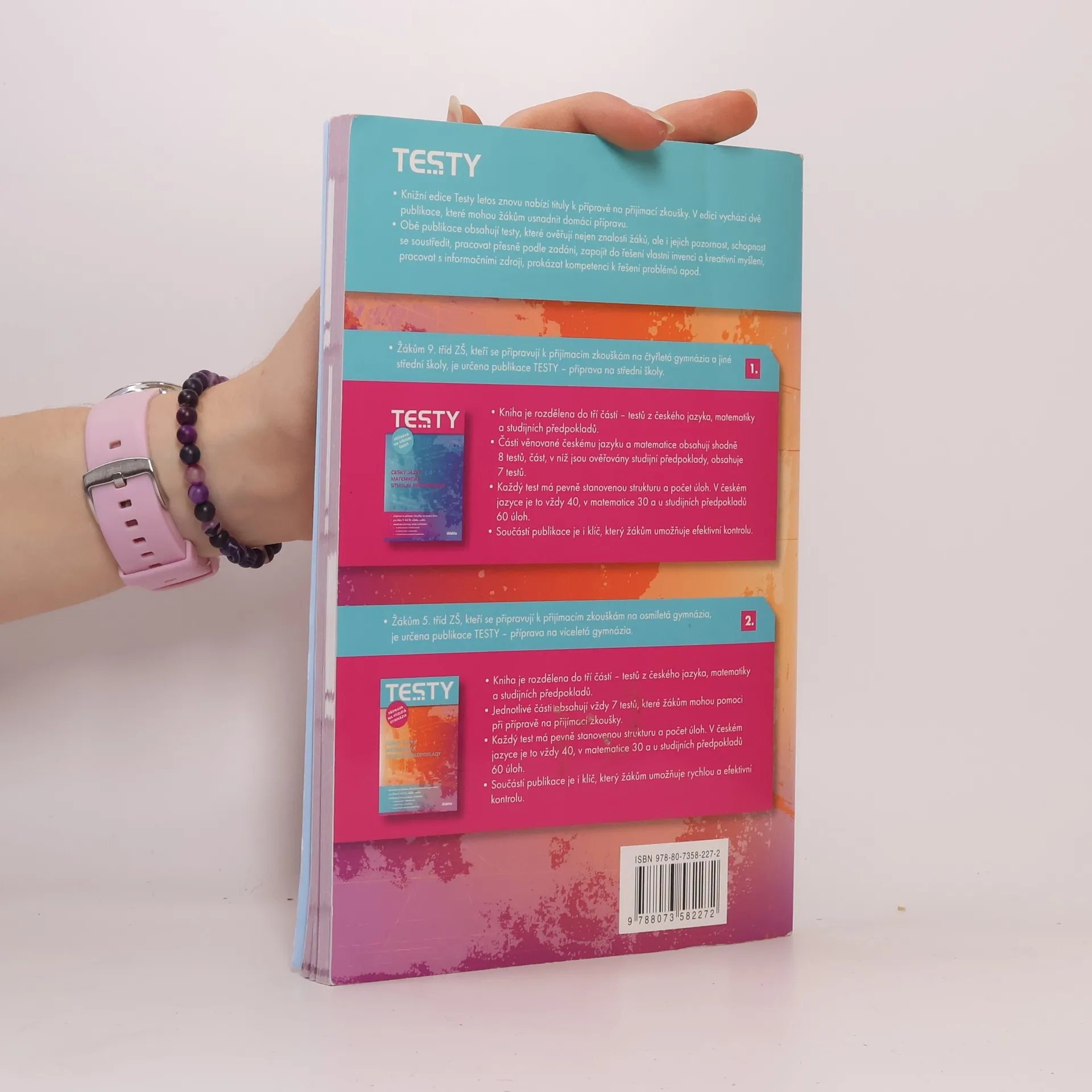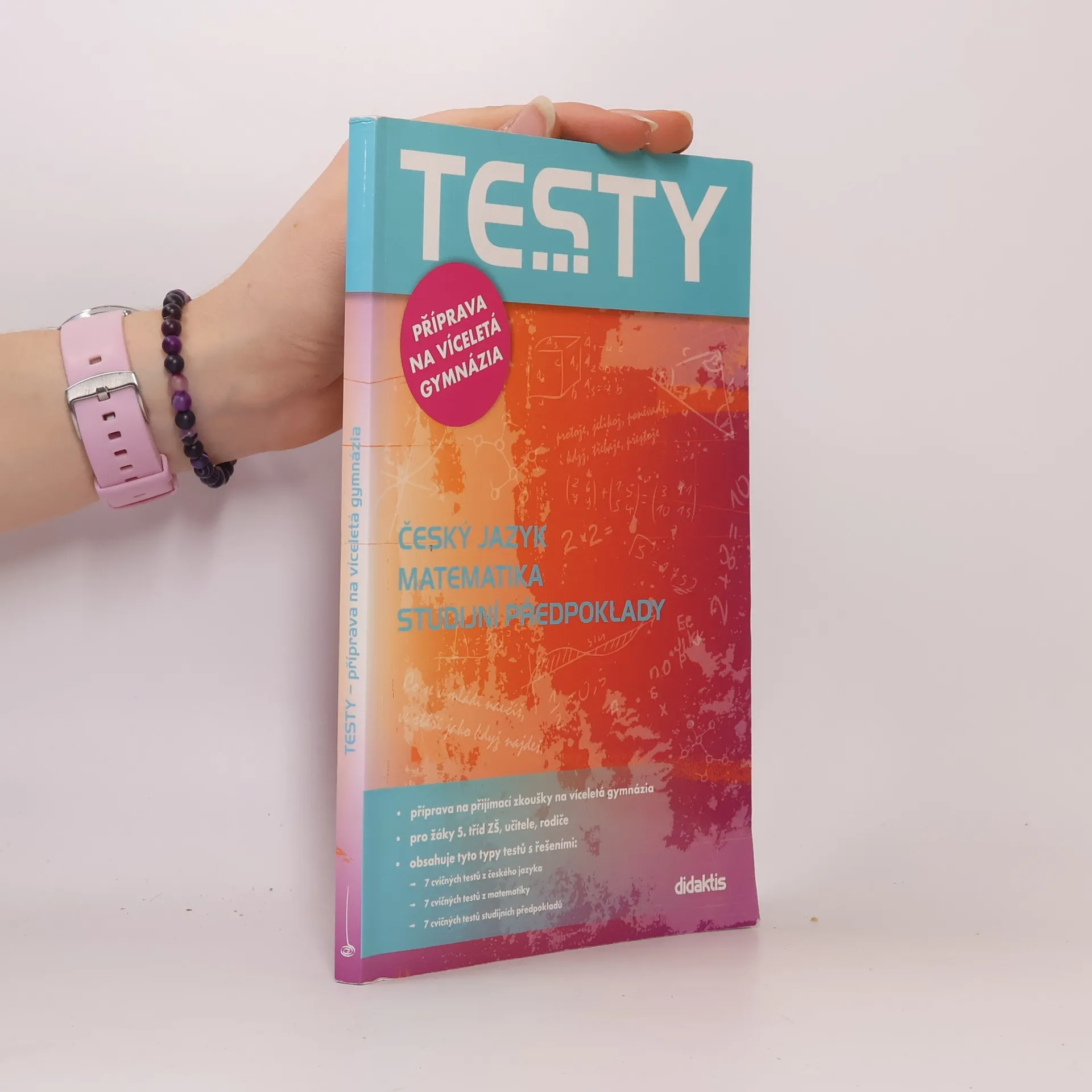Knižní edice TESTY přináší zcela nový titul k přípravě na přijímací zkoušky, který může žákům 5. tříd ZŠ usnadnit domácí přípravu na přijímací zkoušky na osmiletá gymnázia. Publikace obsahuje testy z českého jazyka, matematiky a testy studijních předpokladů. . Publikace je určena žákům 5. tříd ZŠ, kteří se připravují na přijímací zkoušky na osmiletá gymnázia. . Kniha je rozdělena do tří částí testů z českého jazyka, matematiky a studijních předpokladů. . Každá z částí obsahuje 7 cvičných testů. Každý test má předem stanovenou strukturu a počet úloh. V českém jazyce je to vždy 40, v matematice 30 a u studijních předpokladů 60 úloh. . Součástí publikace je i klíč, který žákům umožňuje rychlou a efektivní kontrolu.