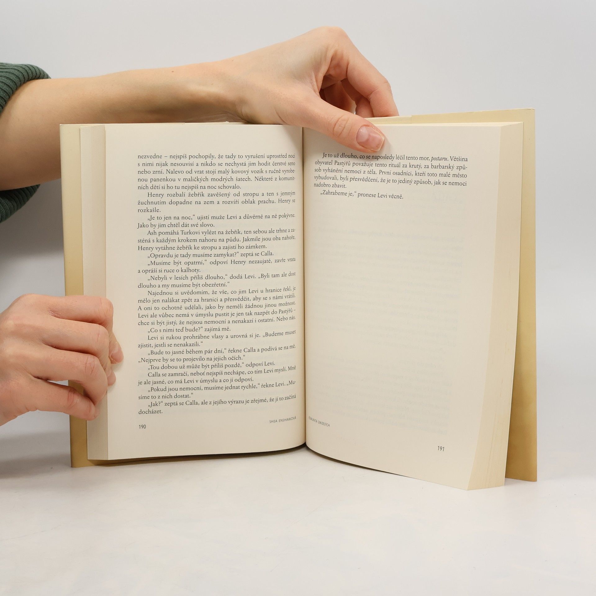 Zlo se skrývá za hranicí.Atmosférický román o podivných zmizeních v odlehlé komunitě.Travis Wren dokáže díky svému neobvyklému talentu nacházet pohřešované osoby. Najímají si ho rodiny, které už vyčerpaly všechny možnosti. K tomu aby dokázal zmizelého najít, potřebuje pouze jeden předmět, který pohřešovaný vlastnil. Když začne pátrat po Maggie St. Jamesové, populární autorce temných a strašidelných knih pro děti, dostane se až na místo, o kterém si většina lidí myslela, že je pouze smyšlené. Na tomto místě žije v odloučení komunita, která si říká Pastýři a kterou založili lidé toužící po jednodušším způsobu života. Chvíli poté, co Travis toto místo objeví, zmizí i on. Stejně jako předtím Maggie St. Jamesová...O několik let později nalezne Theo, muž, který v komunitě strávil celý život, opuštěné auto. Komunitu ale nemá nikdo opouštět a za její hranice není dovolenou vstupovat. Snaha odhalit pravdu o všem, co se děje kolem nich, vede k odhalení tajemství, která před sebou Theo, jeho žena Calla a její setra Bee skrývají. Tajemství, která potvrzují, že jejich dokonalý a izolovaný svět není tak bezpečný, jak si mysleli – neboť temnota má mnoho podob.Chytlavá, krásná, hypnotická a čarovná, Komunita zmizelých je příběhem o pohádkách, našem strachu z temnoty i možnosti ztratit se v divočině vlastní mysli.