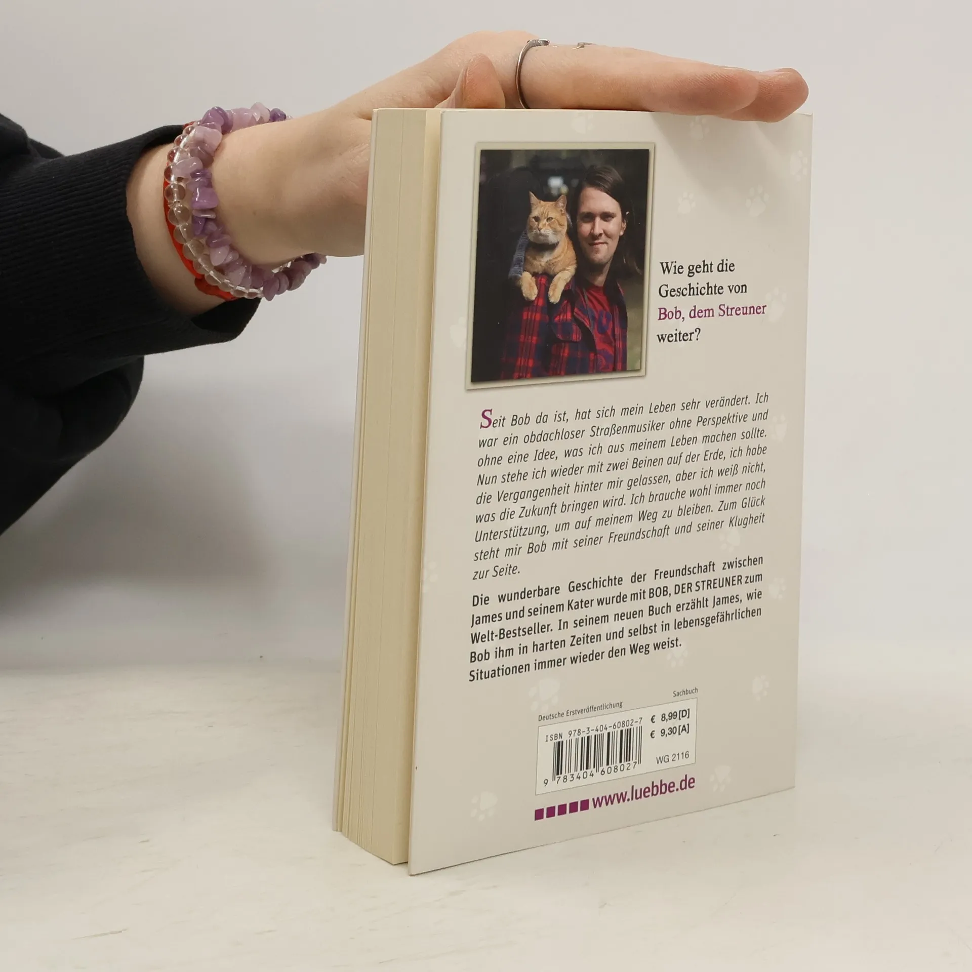 Wie geht die Geschichte von Bob, dem Streuner weiter? Seit Bob da ist, hat sich mein Leben sehr verändert. Ich war ein obdachloser Straßenmusiker ohne Perspektive und ohne eine Idee, was ich aus meinem Leben machen sollte. Nun stehe ich wieder mit zwei Beinen auf der Erde, ich habe die Vergangenheit hinter mir gelassen, aber ich weiß nicht, was die Zukunft bringen wird. Ich brauche wohl immer noch Unterstützung, um auf meinem Weg zu bleiben. Zum Glück steht mir Bob mit seiner Freundschaft und seiner Klugheit zur Seite. Die wunderbare Geschichte der Freundschaft zwischen James und seinem Kater wurde mit „Bob, der Streuner“ zum Welt-Bestseller. In seinem neuen Buch erzählt James, wie Bob ihm in harten Zeiten und selbst in lebensgefährlichen Situationen immer wieder den Weg weist. Mit Fotos von James und Bob