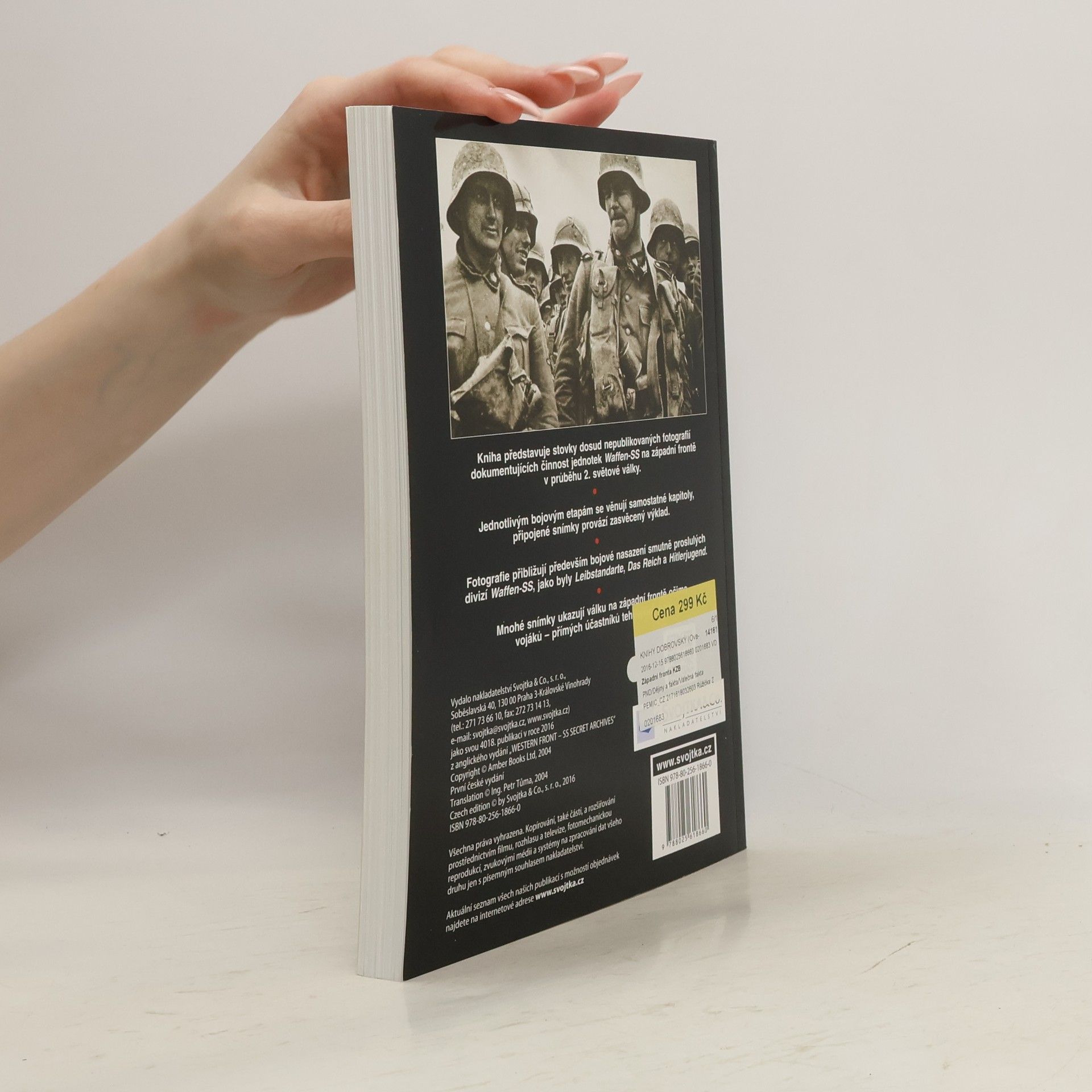Kniha představuje stovky dosud nepublikovaných fotografií dokumentujících činnost jednotek Waffen-SS na západní frontě v průběhu 2. světové války. Jednotlivým bojovým etapám se věnují samostatné kapitoly, připojené snímky provází zasvěcený výklad. Unikátní fotografie přibližují především bojové nasazení smutně proslulých divizí Waffen-SS, jako byly Leibstandarte, Das Reich a Hitlerjugend. Mnohé snímky ukazují válku na západní frontě očima vojáků - přímých účastníků tehdejších bojů.