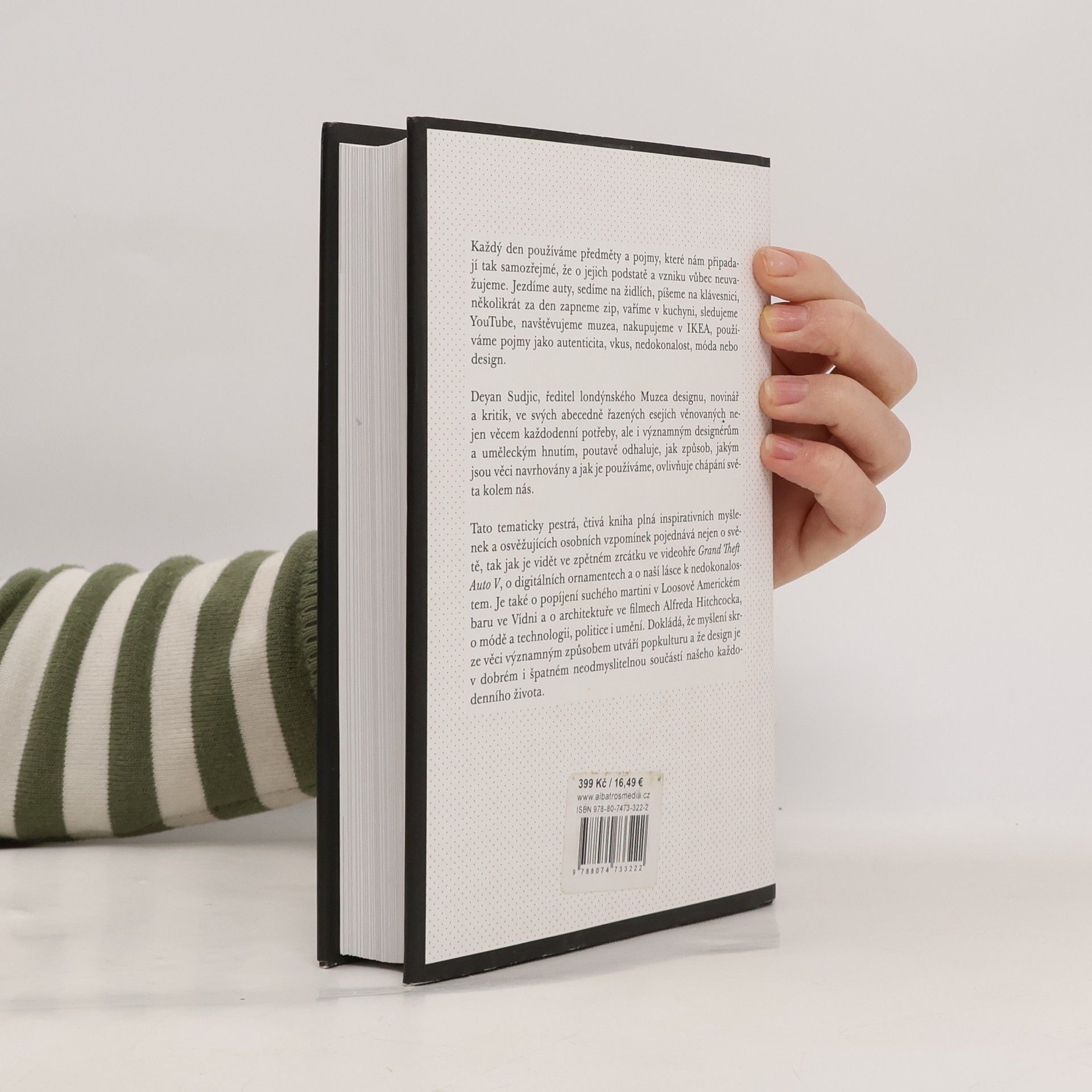 Tato kniha není slovník, ačkoli se z ní dozvíte informace o všem od autenticity až po zipy. Není to ani autobiografie, třebaže předkládá zevrubný a vysoce osobní odborný názor na současnou kulturu. Je to nepostradatelný nástroj, který čtenáři pomůže lépe porozumět modernímu světu. V této knize se píše o tom, co z díla Andyho Warhola dělá pravý padělek, o vzniku národních identit nebo o sběratelské mánii. Pojednává o světě, tak jak je vidět ze zpětného zrcátka ve videohře Grand Theft Auto V, o digitálních ornamentech a o naší lásce k nedokonalostem. Je o popíjení suchého martini ve vídeňském podniku Adolfa Loose American Bar a o architektuře ve filmech Alfreda Hitchcocka, o módě a technologii, politice a umění.