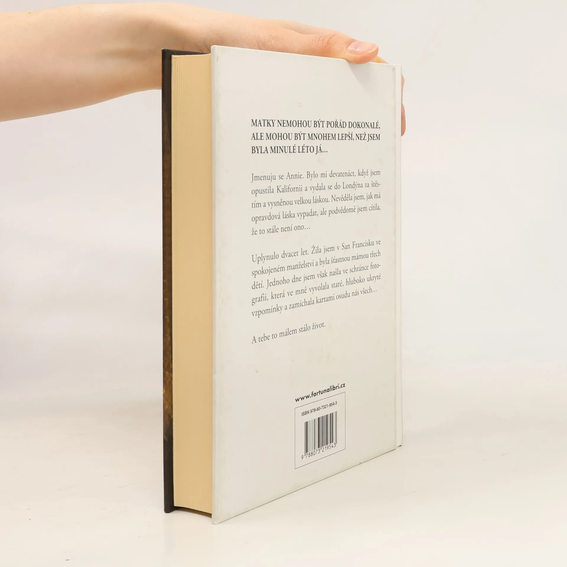 MATKY NEMOHOU BÝT POŘÁD DOKONALÉ, ALE MOHOU BÝT MNOHEM LEPŠÍ, NEŽ JSEM BYLA MINULÉ LÉTO JÁ… Jmenuju se Annie. Bylo mi devatenáct, když jsem opustila Kalifornii a vydala se do Londýna za štěstím a vysněnou velkou láskou. Nevěděla jsem, jak má opravdová láska vypadat, ale podvědomě jsem cítila, že to stále není ono… Uplynulo dvacet let. Žila jsem v San Francisku ve spokojeném manželství a byla šťastnou mámou třech dětí. Jednoho dne jsem však našla ve schránce fotografii, která ve mně vyvolala staré, hluboko ukryté vzpomínky a zamíchala kartami osudu nás všech… A tebe to málem stálo život.