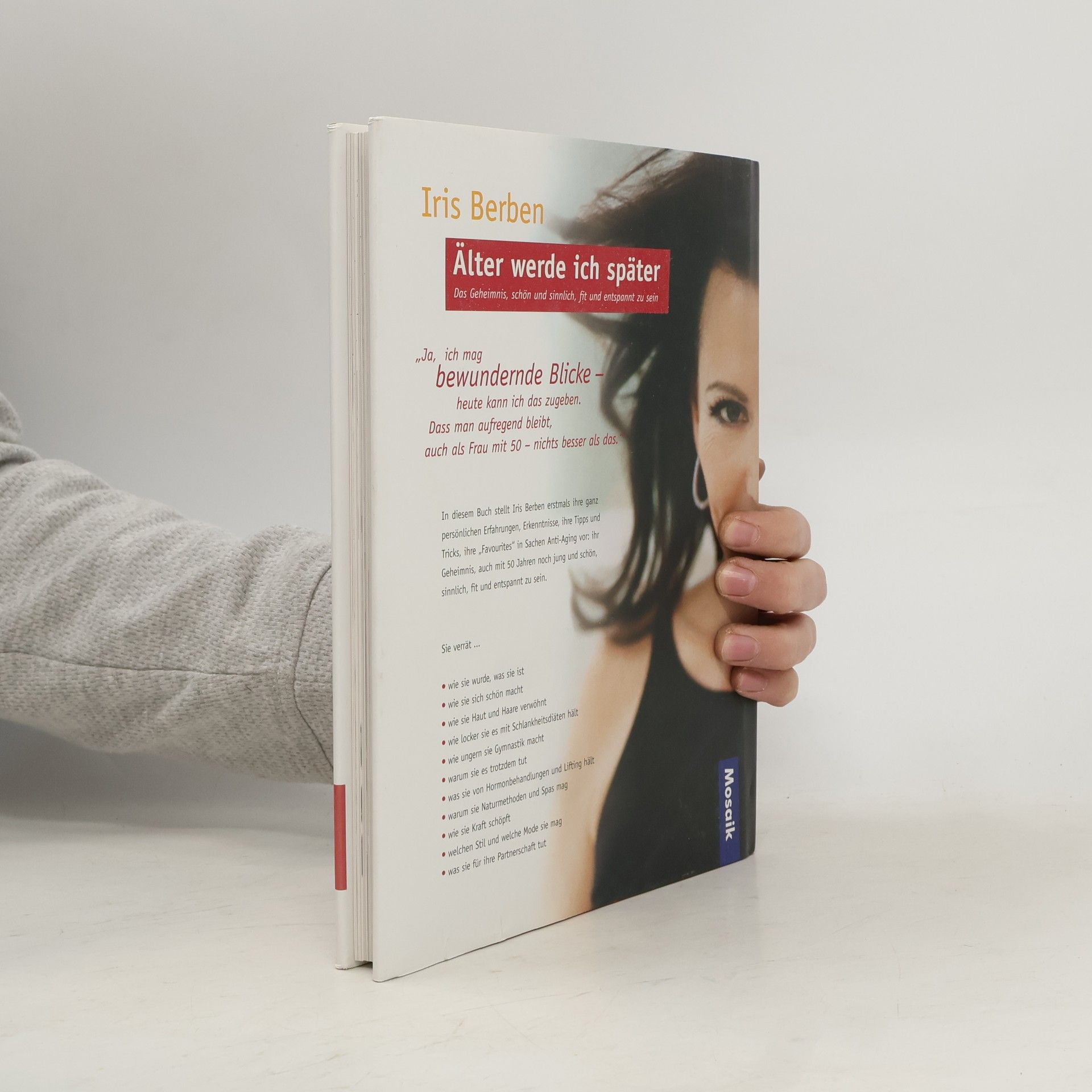 Einer Umfrage zufolge ist Iris Berben Deutschlands "bekannteste und erotischste" Schauspielerin. Als erfahrene Schauspielerin weiß sie ihre Stärken ins rechte Licht zu rücken. Privat lebt sie jedoch längst nicht so diszipliniert, wie man es von einem 50-jährigen Filmstar erwarten würde.§In diesem Buch schreibt sie erfrischend offen, was sie für ihr Aussehen tut und was nicht. Welche Schönheitsrezepte sie ausprobiert und wieder verworfen hat. Dass sie sich ein tägliches Fitnessprogramm auferlegt, obwohl sie eher der bekennende No-Sports-Typ ist. Und wie sie es mit dem so genannten gesunden Leben hält - bei Heißhungerattacken auf Spaghetti und der spontanen Lust auf ein Glas Rotwein.§Die Schauspielerin lässt uns an ihrem Leben vor und hinter den Kulissen teilnehmen. Sie verrät Tricks der Visagistin für ein makelloses Film-Make-up, aber sie schreibt auch über ihre Probleme mit grauen Haaren, Doppelkinn und Rückenverspannungen. Ungeniert berichtet sie von ihrer Einstellung zur Sexualität und von ihrem Glück als Mutter. Iris Berben hat bewusst keinen klassischen Ratgeber geschrieben, die Mischung aus persönlicher Erfahrung, Anekdoten und Expertenrat entspricht mehr ihrem Stil. Vor allem will sie nicht als "Überfrau" erscheinen, die sich in allen Situationen ihres Lebens richtig verhalten und nie Probleme mit dem Älterwerden gehabt hätte.