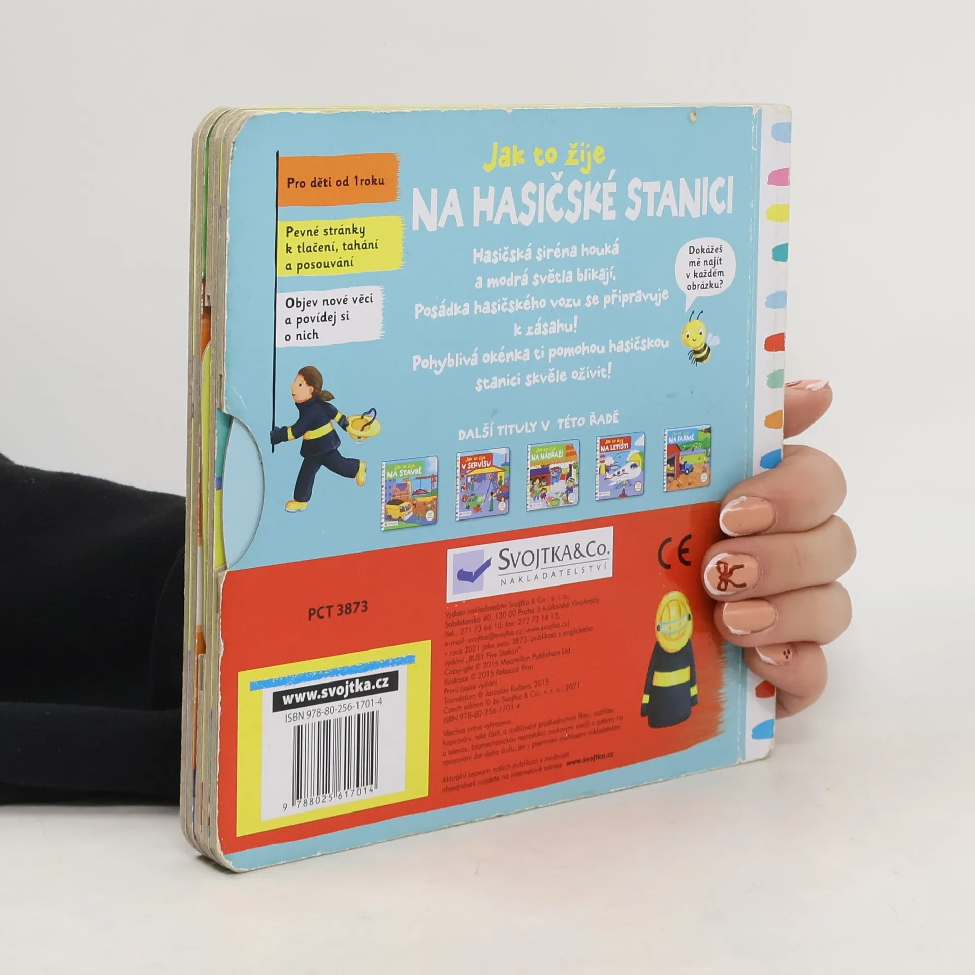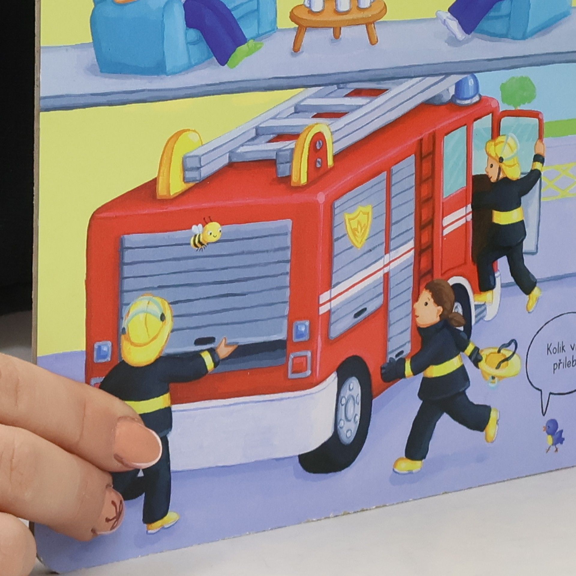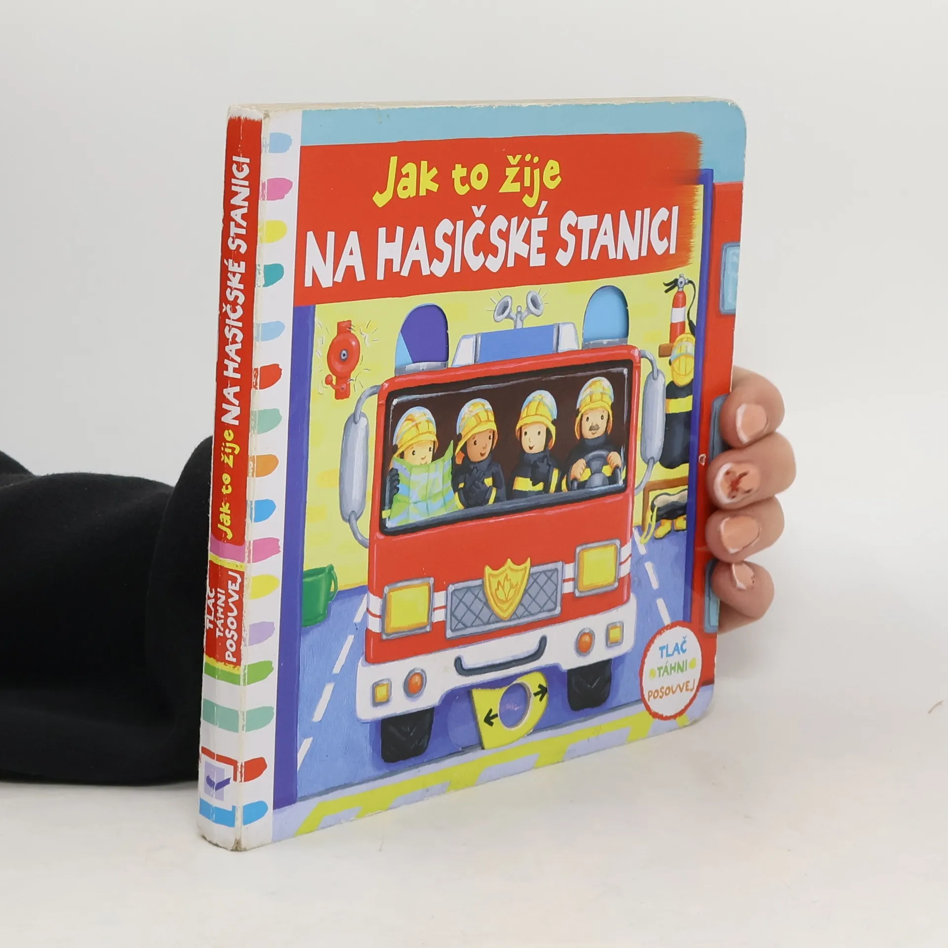Leporelo je určeno pro děti od jednoho roku. Má pevné stránky s posuvnými a otočnými prvky, a tak si malí hasiči při prohlížení procvičí i jemnou motoriku. Vítejte na hasičské stanici! Hasičská siréna houká a modrá světla blikají. Posádka hasičského vozu se připravuje k zásahu… Toto dětské leporelo je určeno pro děti od jednoho roku. Má pevné stránky s posuvnými a otočnými prvky, a tak si malí hasiči při prohlížení knížky současně procvičí jemnou motoriku – mohou na jednotlivých stránkách posouvat, tahat, otáčet. Objeví nové věci a mohou si o nich povídat. Tak vzhůru na hasičskou stanici – je tam opravdu rušno!