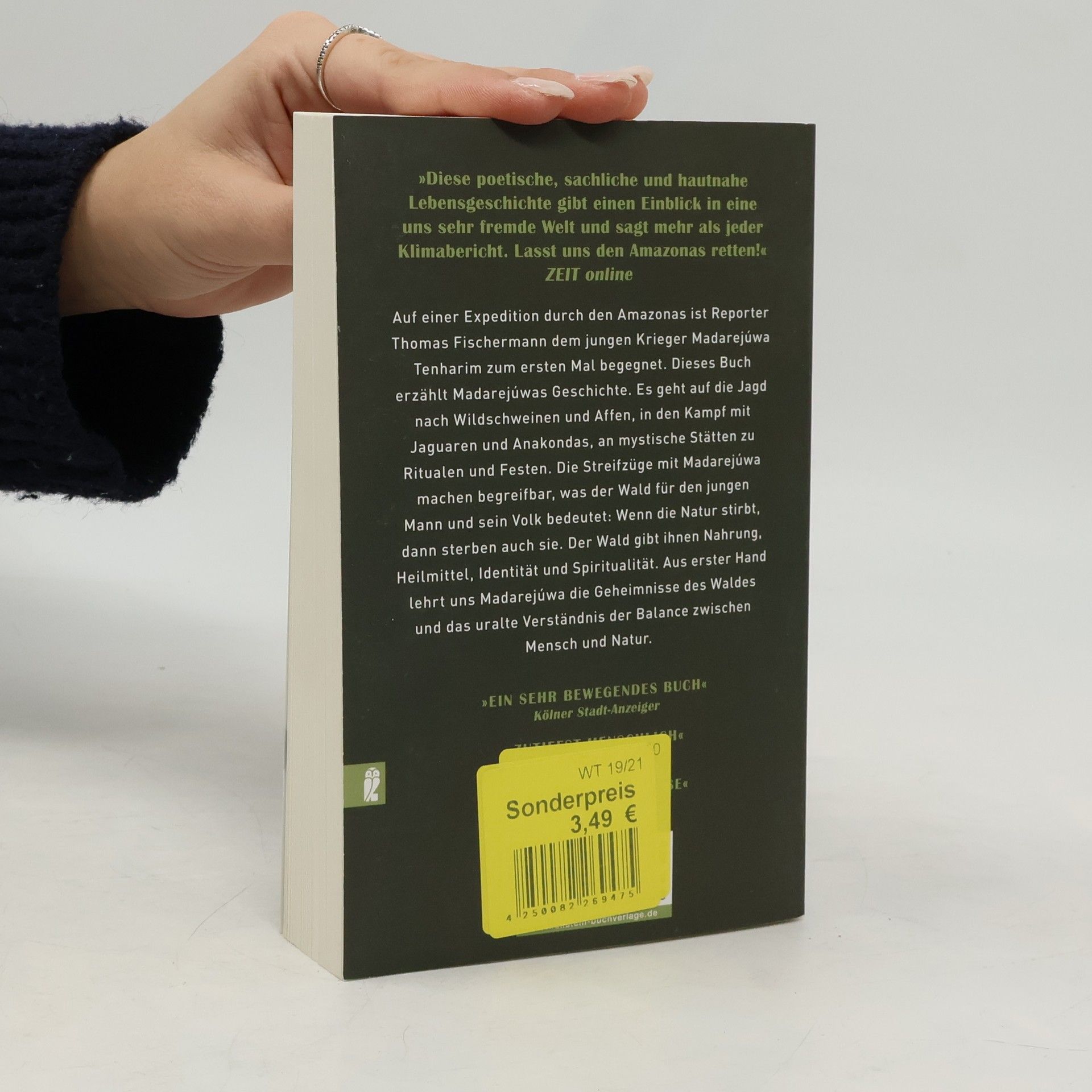Auf einer Expedition durch den Amazonas ist Thomas Fischermann, Reporter der ZEIT, dem jungen Krieger Madarejúwa Tenharim zum ersten Mal begegnet. Dieses Buch erzählt Madarejúwas Geschichte. Es geht auf die Jagd nach Wildschweinen und Affen, in den Kampf mit Jaguaren und Anakondas, an mystische Stätten zu Ritualen und Festen. Die Streifzüge mit Madarejúwa machen begreifbar, was der Wald für den jungen Mann und sein Volk bedeutet: Wenn die Natur stirbt, dann sterben auch sie. Aus dem Wald beziehen sie ihre Nahrung, ihre Naturheilmittel, ihre Identität und Spiritualität. Aus erster Hand erfahren wir von einem uralten Verständnis der Balance zwischen Mensch und Natur.