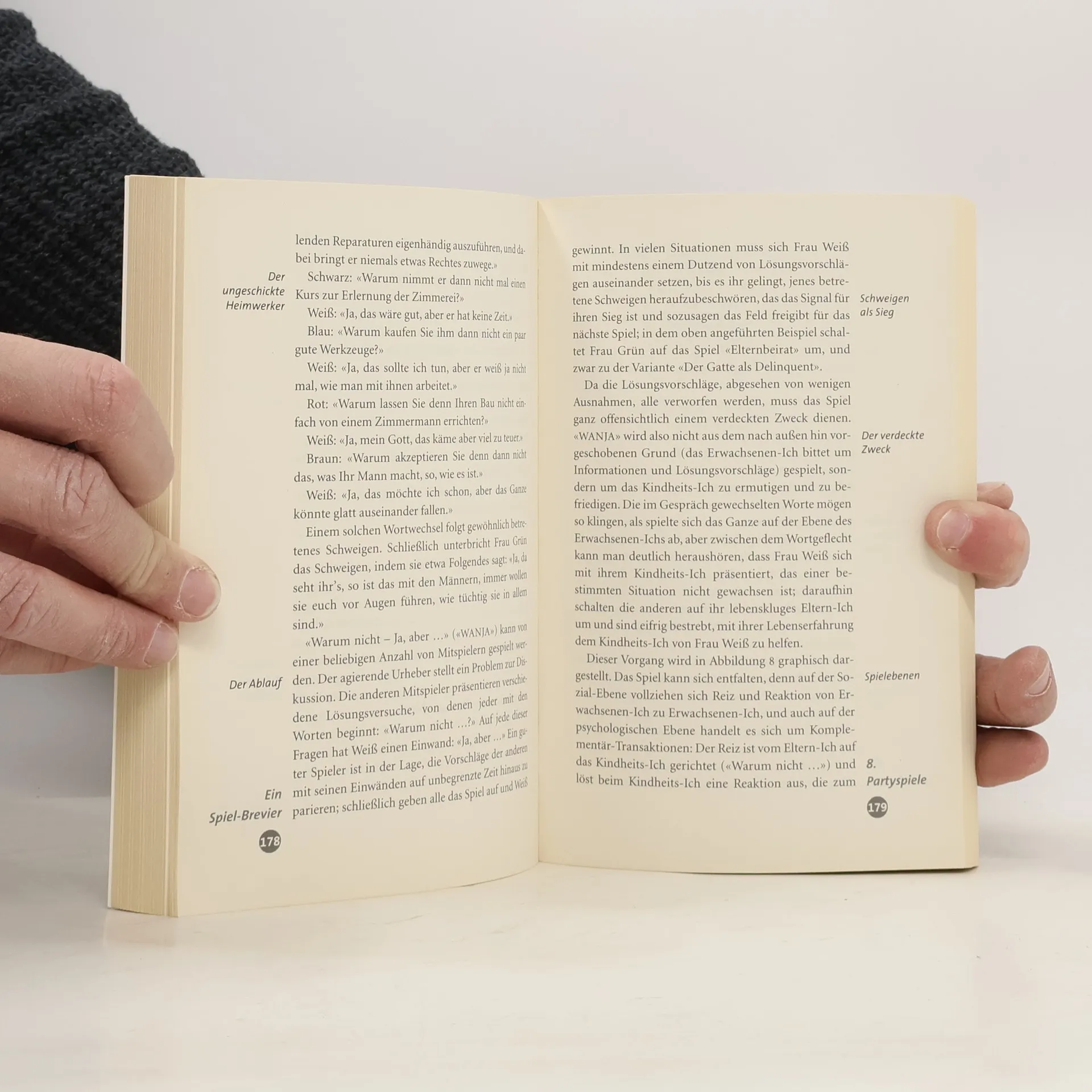 Eric Berne macht auf wissenschaftlich kompetente und dabei geistreich amüsante Weise deutlich, wie das Erkennen der eigenen Ehe-, Party-, Sex-, Räuber-, Doktor- und Lebensspiele dem Menschen zu einer neuen Bewusstheit verhilft und ihm den Weg zu einer konstruktiven Lebensführung ebnet. Das bringt neben ungetrübtem Lesevergnügen einen befreienden Erkenntniszuwachs in den ernsten persönlichen, familiären und gesellschaftlichen Krisensituationen des Alltags.