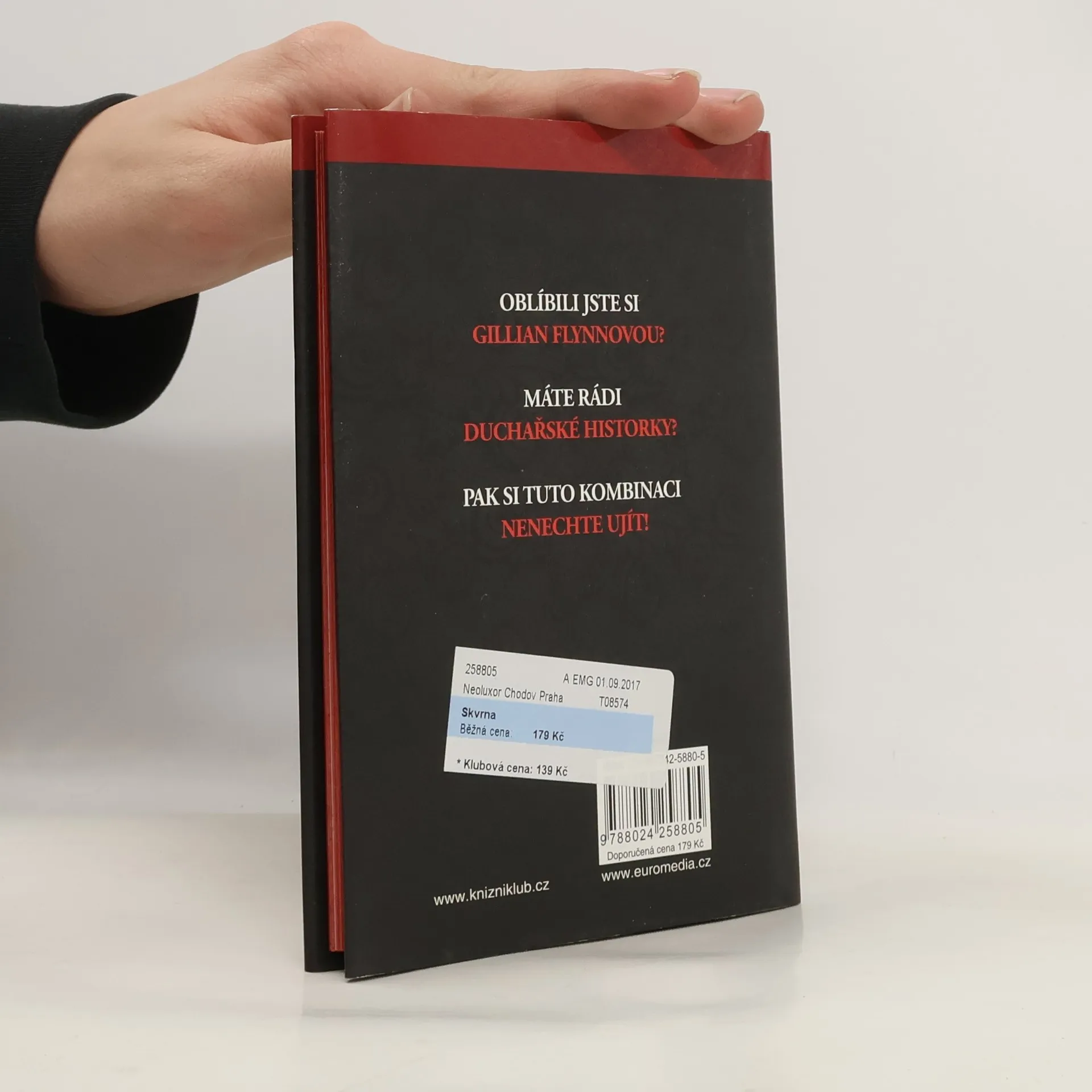 Mistrovská hororová povídka od světové bestselleristky Gillian Flynnové je poctou klasickým duchařským historkám a dalším důkazem autorčina všestranného spisovatelského talentu (získala za ni prestižní Edgar Award). Důkazem, který si nelze nechat ujít. Neškodné podvůdky, snaha přežívat, drobné lži, a taky jeden věštecký salon se speciálními službami v zadní části. To je svět mladé ženy, na kterou se jednoho upršeného jarního dne obrátí Susan Burkeová, které straší v domě. Jenže ten starý viktoriánský dům skrývá víc tajemství než jednu krvavou šmouhu na stěně a pochybné duchy, které vyžene trocha šalvěje a mořské soli. Dost možná tady půjde někomu i o život… Skvrnu (v originále Grownup, původním názvem What Do You Do?) napsala Flynnová pro soubor Rogues (Darebáci), který z povídek vícera autorů sestavil George R. R. Martin. Toto je její první samostatné vydání.