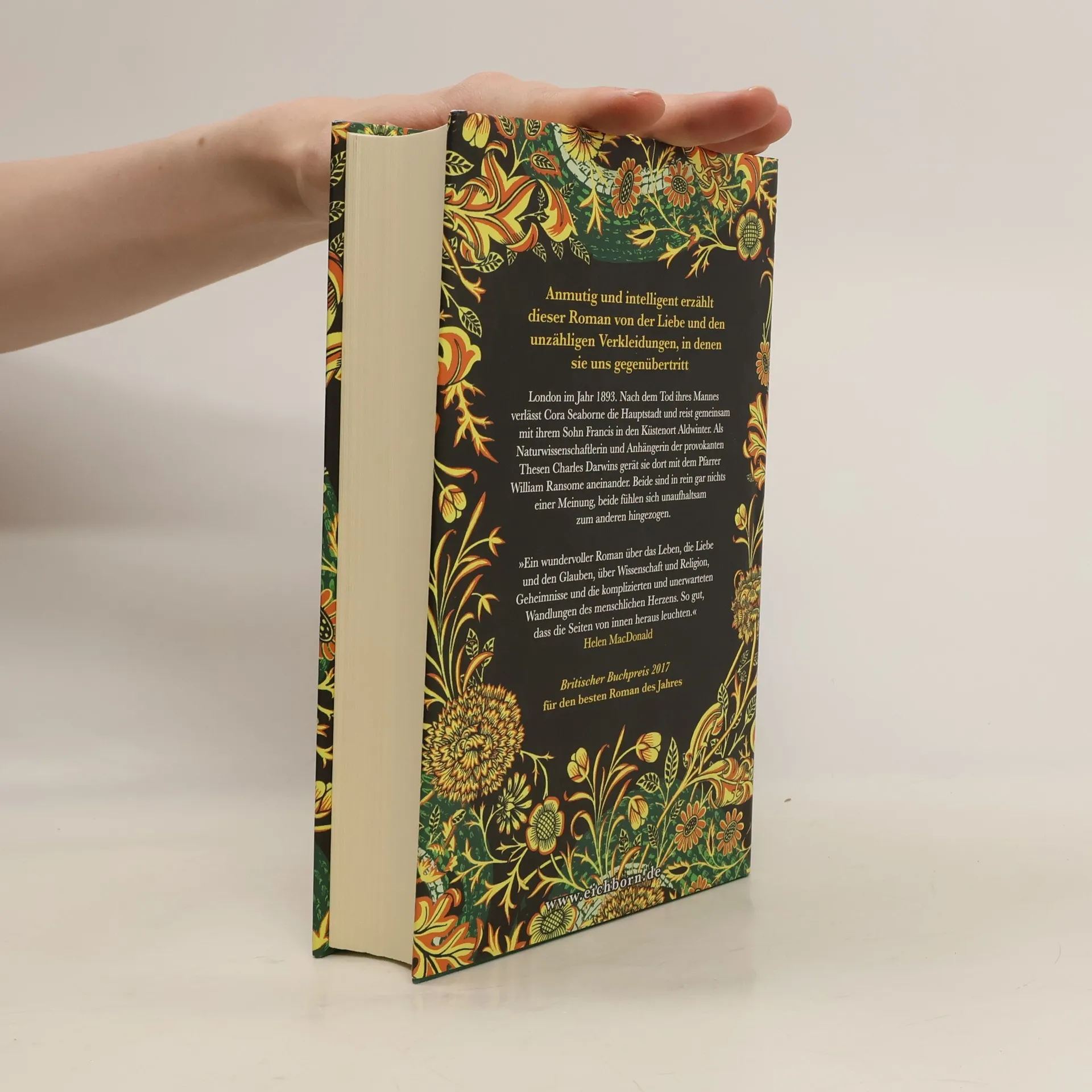 London im Jahr 1893. Nach dem Tod ihres Mannes verlässt Cora Seaborne die Hauptstadt und reist gemeinsam mit ihrem Sohn Francis in den Küstenort Aldwinter. Als Naturwissenschaftlerin und Anhängerin der provokanten Thesen Charles Darwins gerät sie dort mit dem Vikar William Ransome aneinander. Beide sind in rein gar nichts einer Meinung, beide fühlen sich unaufhaltsam zum anderen hingezogen. Anmutig und intelligent erzählt dieser Roman - noch vor allem anderen - von der Liebe und den unzähligen Verkleidungen, in denen sie uns gegenübertritt.