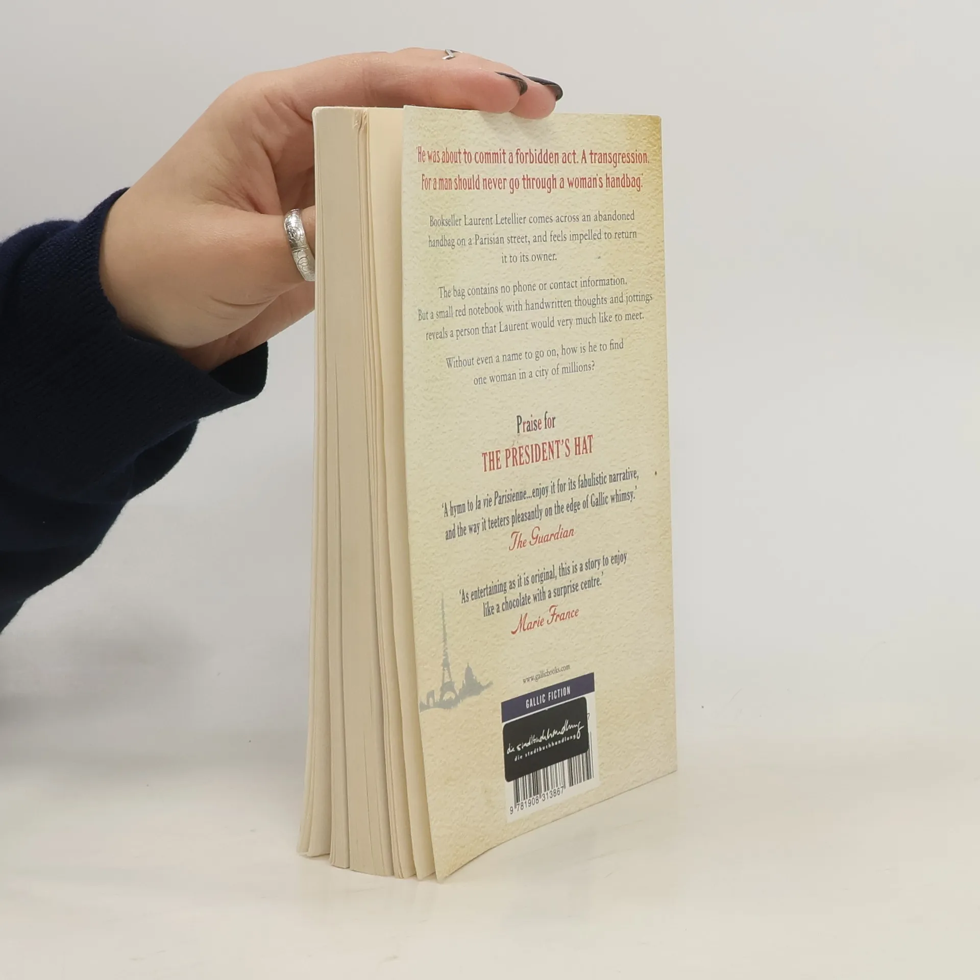 Heroic bookseller Laurent Letellier comes across an abandoned handbag on a Parisian street. There's nothing in the bag to indicate who it belongs to, although there's all sorts of other things in it. Laurent feels a strong impulse to find the owner and tries to puzzle together who she might be from the contents of the bag. Especially a red notebook with her jottings, which really makes him want to meet her. Without even a name to go on, and only a few of her possessions to help him, how is he to find one woman in a city of millions?The Red Notebook has already been sold in twelve different languages. French TV is making a film of The President's Hat and the movie rights of The Red Notebook have been sold to UGC.Antoine Laurain was born in Paris. He is the author of five novels, including The President's Hat.