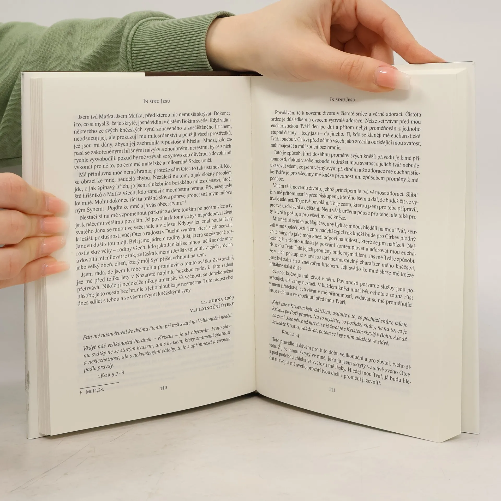 Roku 2007 začali uprostřed ticha adorace k srdci jednoho kněze promlouvat Pán Ježíš a Panna Maria. Z těchto slov se zrodila kniha In Sinu Jesu, jejíž stránky promlouvají přímo doprostřed potřeb člověka naší doby a pomáhají mu prohloubit vztah k Pánu. Na pozadí základního tématu, jímž je klanění se eucharistickému Kristu a přinášení náhrady za ty, kdo se neklanějí, se zde otvírají se mnohá další základní témata duchovního života: modlitba v různých svých rozměrech; význam odevzdání se Boží prozřetelnosti; nezbytnost ticha; potřeba svátostí a posvátné liturgie; tajemství nejsvětější oběti mše svaté; podstata kněžství a klíč k jeho apoštolské plodnosti; role Panny Marie a svatých v našich životech; zkušenost hříchu a vlastní slabosti na cestě dorůstání v Krista; touha po nebi a obnova katolické církve na zemi.Kniha vyšla s církevním schválením původně v Irsku a stala se zdrojem obnovy vnitřního života řady kněží, řeholníků i laiků.