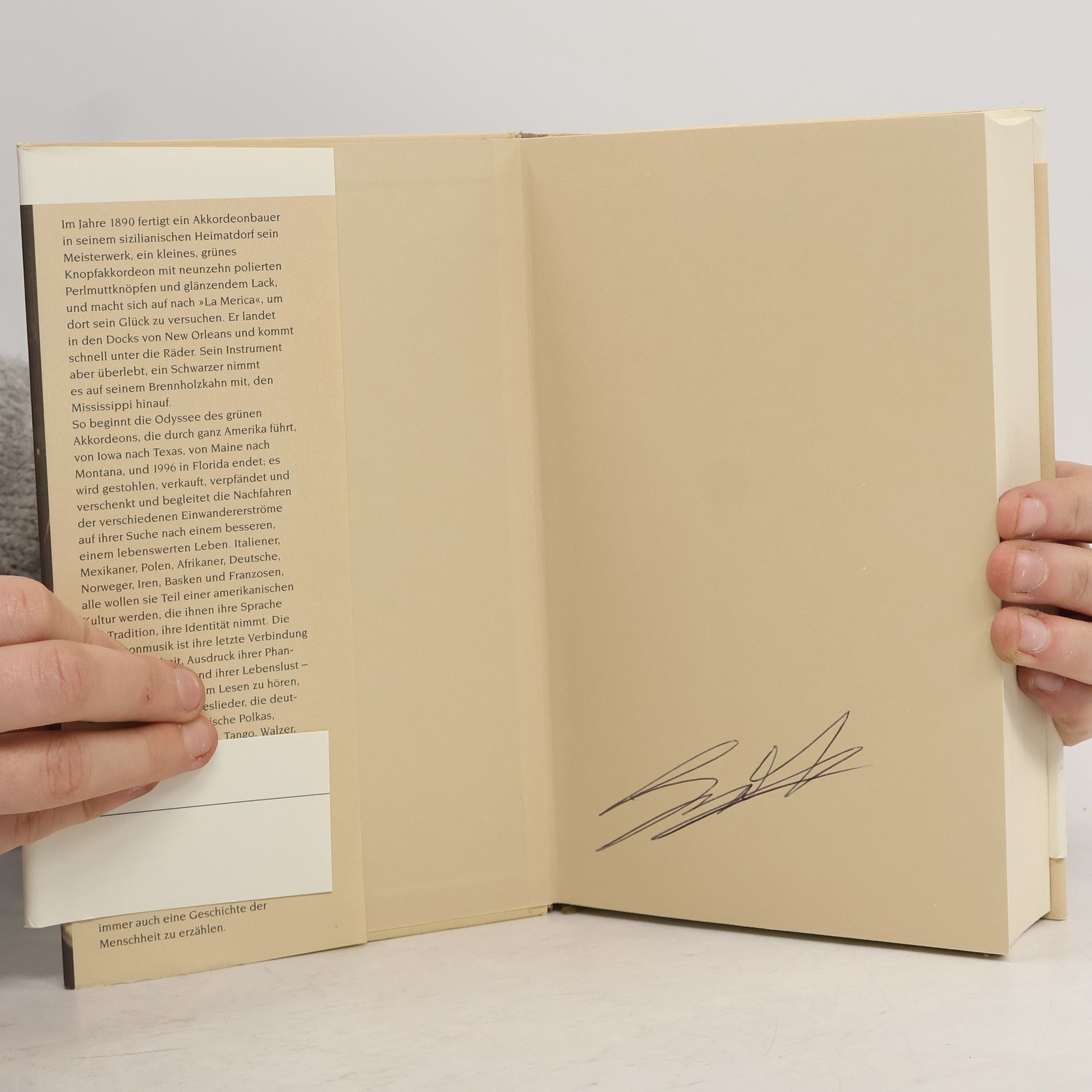 Die Odysse eines Akkordeons durch 100 Jahre amerikanische Geschichte. Ein grünes Akkordeon, 1890 in Sizilien gefertigt, gelangt mit seinem ersten Besitzer nach Amerika. Fast 100 Jahre lang erlebt es eine Odyssee durch den Kontinent, wird gestohlen, verkauft, verpfändet und verschenkt und begleitet die Nachfahren verschiedener Einwanderersippen auf ihrer Suche nach einem besseren Leben. Der Roman, voll Musik und Leidenschaft, voll Schmerz und Gewalt, erzählt von der Geschichte Amerikas und vom Schicksal der Menschen, die es schufen.