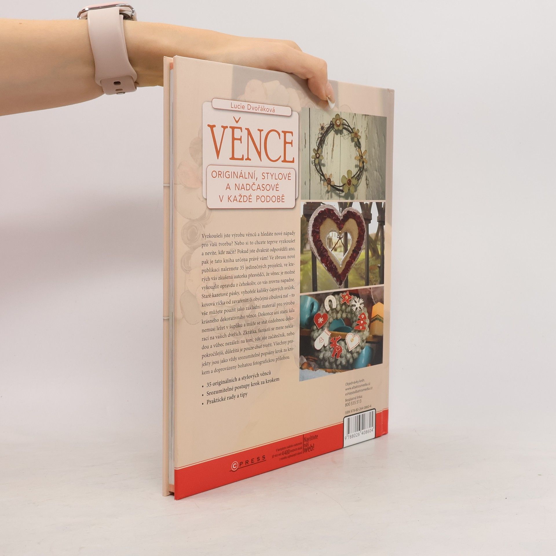 Vyzkoušeli jste výrobu věnců a hledáte nové nápady pro vaši tvorbu? Nebo si to chcete teprve vyzkoušet a nevíte, kde začít? Pokud jste dvakrát odpověděli ano, pak je tato kniha určena právě vám! Ve zbrusu nové publikaci naleznete 35 jedinečných projektů, ve kterých vás zkušená autorka přesvědčí, že věnec je možné vykouzlit opravdu z čehokoliv, co vás zrovna napadne. Staré kazetové pásky, vyhořelé kalíšky čajových svíček, kovová víčka od zavařenin či obyčejná cibulová nať - to vše můžete použít jako základní materiál pro výrobu krásného dekorativního věnce. Dokonce ani stará šála nemusí ležet v šuplíku a může se stát ozdobnou dekorací na vašich dveřích. Zkrátka, fantazii se meze nekladou a vůbec nezáleží na tom, zda jste začátečník nebo pokročilejší, důležitá je pouze chuť tvořit. Všechny projekty jsou vždy srozumitelně popsány krok za krokem a doprovázeny bohatou fotografickou přílohou.
