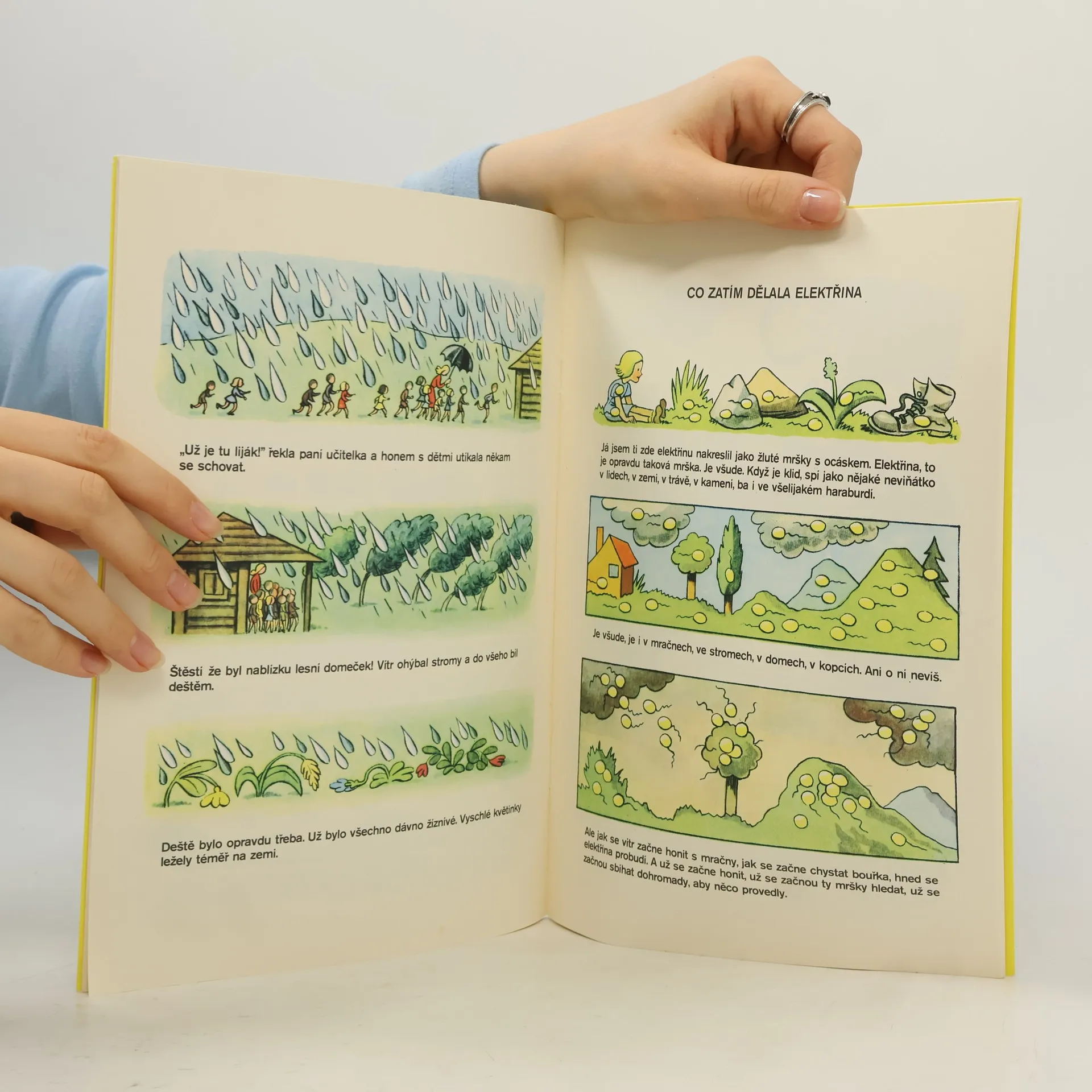 Oblíbená dětská knížka od slavného autora a ilustrátora Ondřeje Sekory, kterou si mnozí z nás pamatují z dětských let. Srozumitelnou a zábavnou formou seznamuje mladé čtenáře s fascinující oblastí meteorologie a vodohospodářství. Vysvětluje řadu přírodní jevů, jako jsou mraky, déšť, bouřku, slunce či cyklus střídání dne a noci, to vše zároveň zasazuje do kontextu lidského působení. Čtenář se proto dočte také o přehradách, větrolamech, zavodňovacích kanálech a dalších technologických možnostech využití přírodních živlů. Kniha je bohatě ilustrovaná, čtenáře nezahlcuje nadbytečnými faktografickými údaji a je radost si v ní listovat. Nostalgický klenot poprvé vydaný na začátku padesátých let, který vykouzlí úsměv na tváři i dnes. Dětem i dospělým.