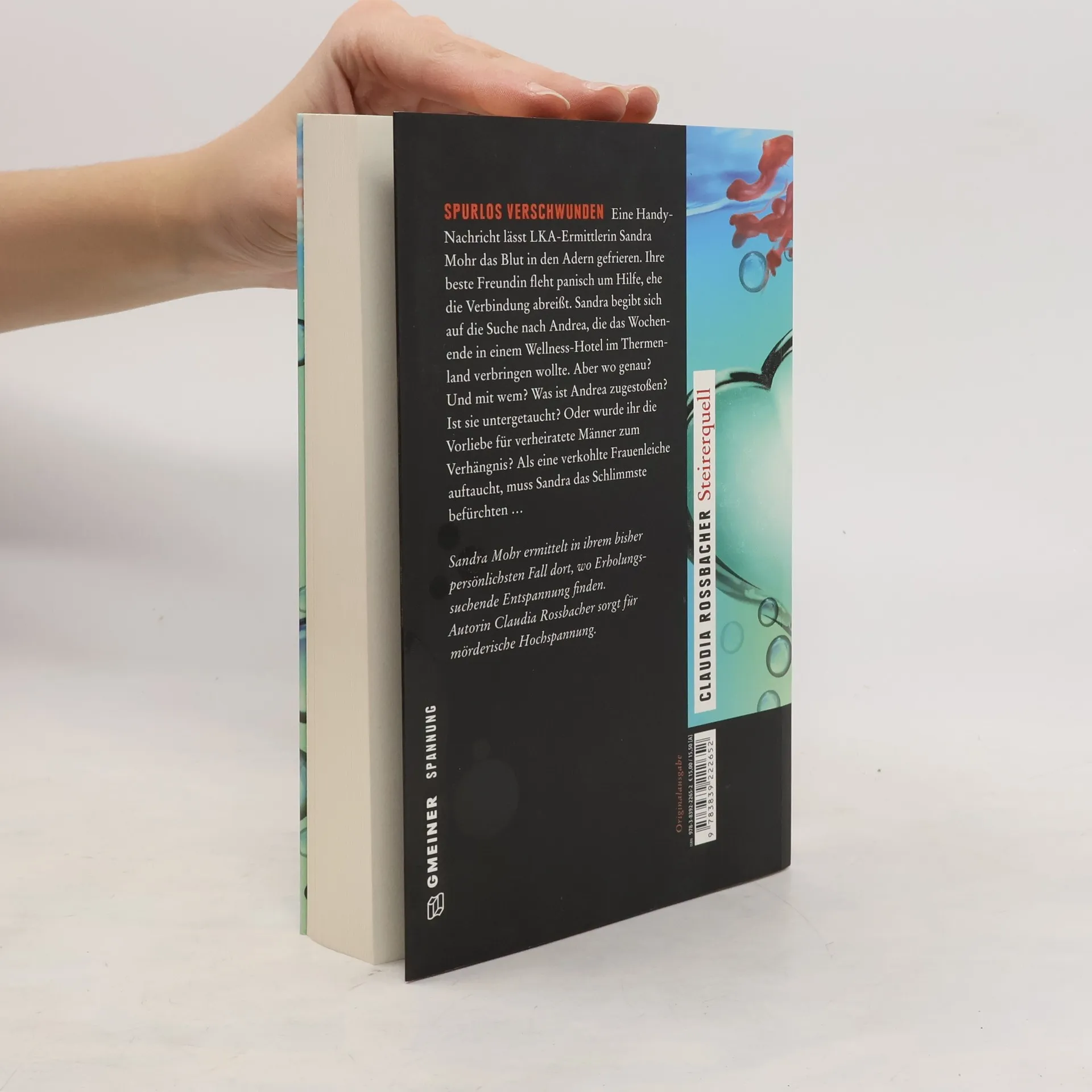 Eine Handy-Nachricht lässt LKA-Ermittlerin Sandra Mohr das Blut in den Adern gefrieren. Ihre beste Freundin fleht panisch um Hilfe, ehe die Verbindung abreißt. Sandra begibt sich auf die Suche nach Andrea, die das Wochenende in einem Wellness-Hotel im Thermenland verbringen wollte. Aber wo genau? Und mit wem? Was ist Andrea zugestoßen? Ist sie untergetaucht? Oder wurde ihr die Vorliebe für verheiratete Männer zum Verhängnis? Als eine verkohlte Frauenleiche auftaucht, muss Sandra das Schlimmste befürchten …