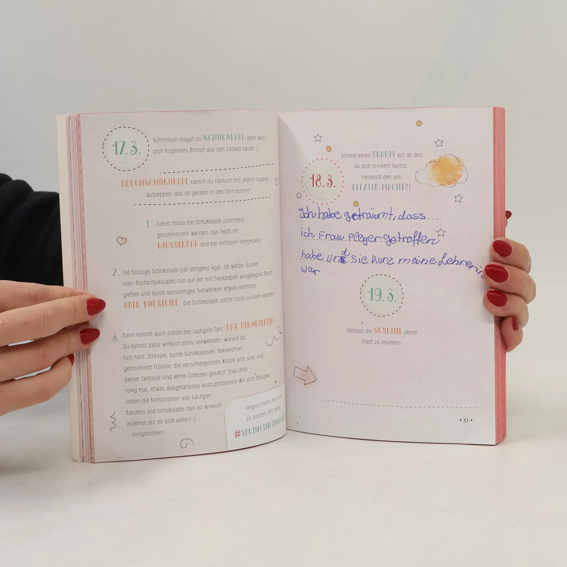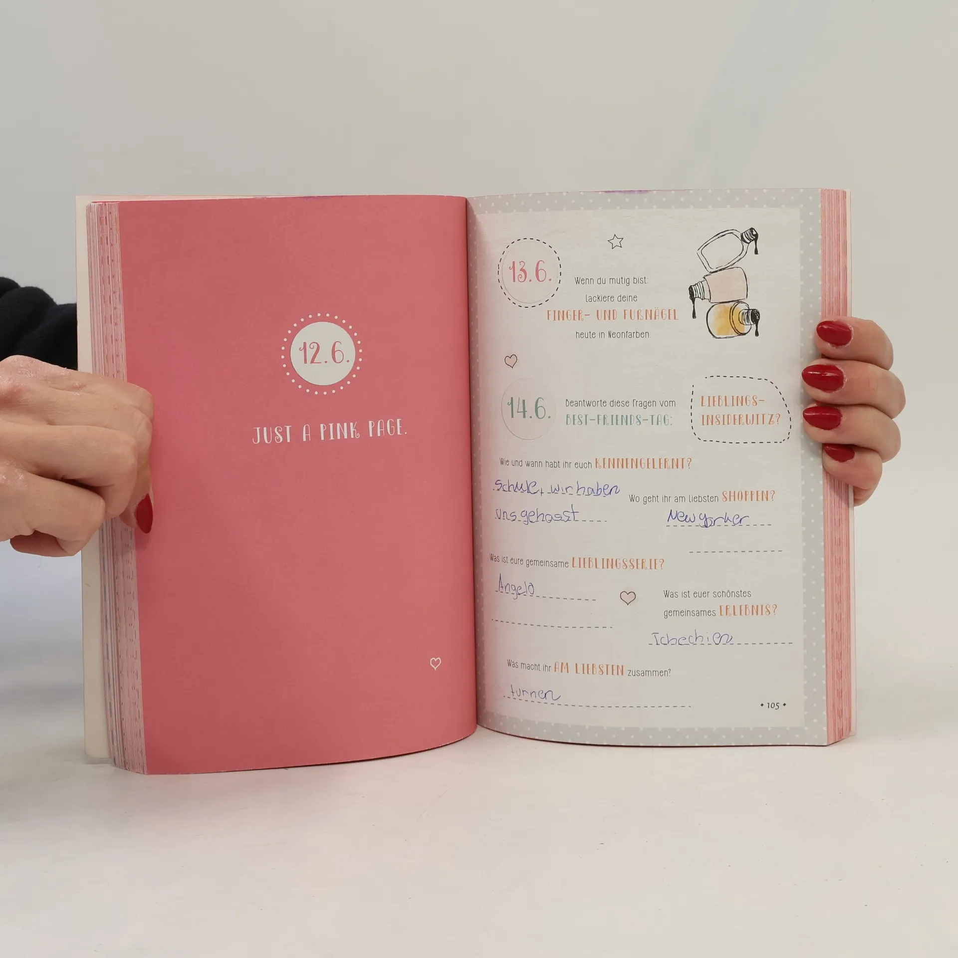 - Ein buntes Mitmachbuch mit verrückten Ideen, die motivieren und an die Jahreszeiten angepasst sind. - Ein immerwährender Kalender, damit der Einstieg jederzeit im Jahr möglich ist. - Hochwertiges Paperback mit Glanzfolie und Farbschnitt. - Die besten Freundinnen füllen das Buch selbst auf ihrem YouTube-Kanal aus und teilen ihre Ergebnisse mit der Community. 365 bunte Ideen von den beliebten Freundinnen auf YouTube: Viktoria und Sarina Die beiden besten Freundinnen Viktoria und Sarina lieben Do It Yourselfs, Trends und Beauty. Ihre Videos sind so bunt und verrückt, wie die Freundinnen aus Österreich selbst. Auf ihrem YouTube-Channel testen sie neue Produkte und machen regelmäßig ein Umstyling inklusive neuer Haarfarbe! Für ihre Fans haben sich Viktoria und Sarina etwas besonderes ausgedacht: Ein Mitmachbuch mit einer lustigen und spannenden Idee für jeden Tag. Die Aufgaben sind kreativ, inspirierend und bunt. Das Buch ist liebevoll gestaltet und mit vielen Illustrationen versehen. Es wird durch die Kombination mit Social Media interaktiv. Jede Jahreszeit ist anders gestaltet und enthält spezielle Aufgaben, sodass man damit beginnen kann, wann man möchte.