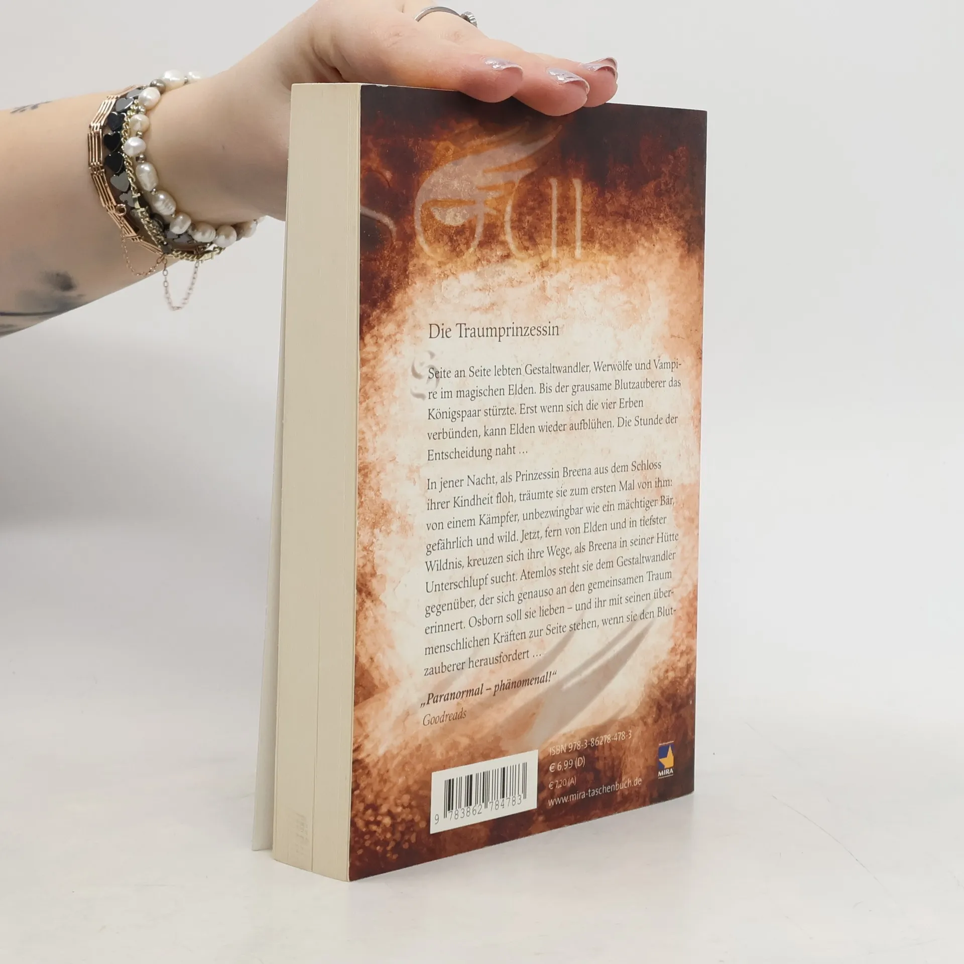 Seite an Seite lebten Gestaltwandler, Werwölfe und Vampire im magischen Elden. Bis der grausame Blutzauberer das Königspaar stürzte. Erst wenn sich jetzt die vier Erben verbünden, kann Elden wieder aufblühen. Die Stunde der Entscheidung naht … In jener Nacht, als Prinzessin Breena aus dem Schloss ihrer Kindheit floh, träumte sie zum ersten Mal von ihm: von einem Kämpfer, unbezwingbar wie ein mächtiger Bär, gefährlich und wild. Jetzt, fern von Elden und in tiefster Wildnis, kreuzen sich ihre Wege, als Breena in seiner Hütte Unterschlupf sucht. Atemlos steht sie dem Gestaltwandler gegenüber, der sich genauso an den gemeinsamen Traum erinnert. Osborn soll sie lieben – und ihr mit seinen übermenschlichen Kräften zur Seite stehen, wenn sie den Blutzauberer herausfordert … Deutsche Erstveröffentlichung