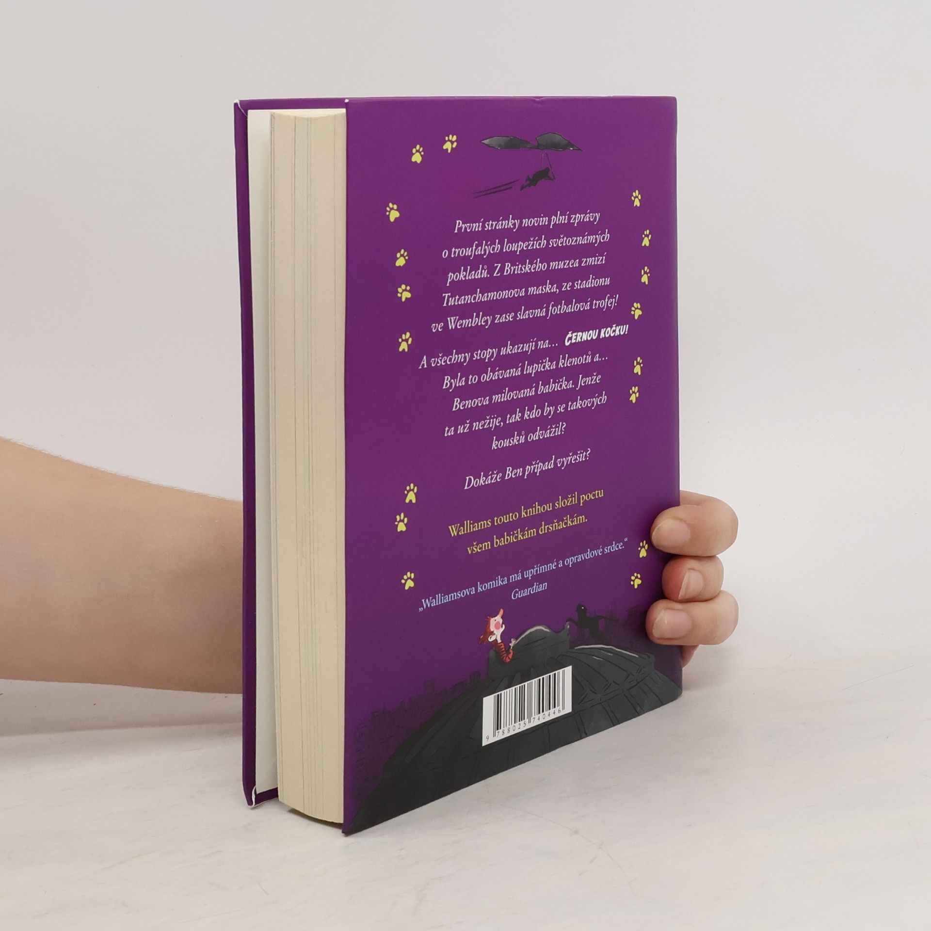 David Walliams se vrací do světa Babičky drsňačky v prvním a zároveň posledním (kdo ví) pokračování! Ben si zvyká na život bez své milované babičky. Byla svérázná: náruživě pojídala kapustu (což mělo za následek vytrvalé nevoňavé pokvákávání jejího zadku), skvěle hrála scrabble... a hlavně byla slavnou lupičkou známou pod přezdívkou Černá kočka. Benovi po ní zbyla báječná vzpomínka na neobyčejnou výpravu s cílem ukrást korunovační klenoty. A pak se stane cosi nevysvětlitelného. Pod rouškou tmy je uloupen největší světový poklad. A stopy vedou k Černé kočce! Ale to přece není možné... nebo je? Jestlipak Ben tuhle záhadu rozluští? Očekávejte nečekané. Bude to napínavé až do konce, a nadmíru zábavné!