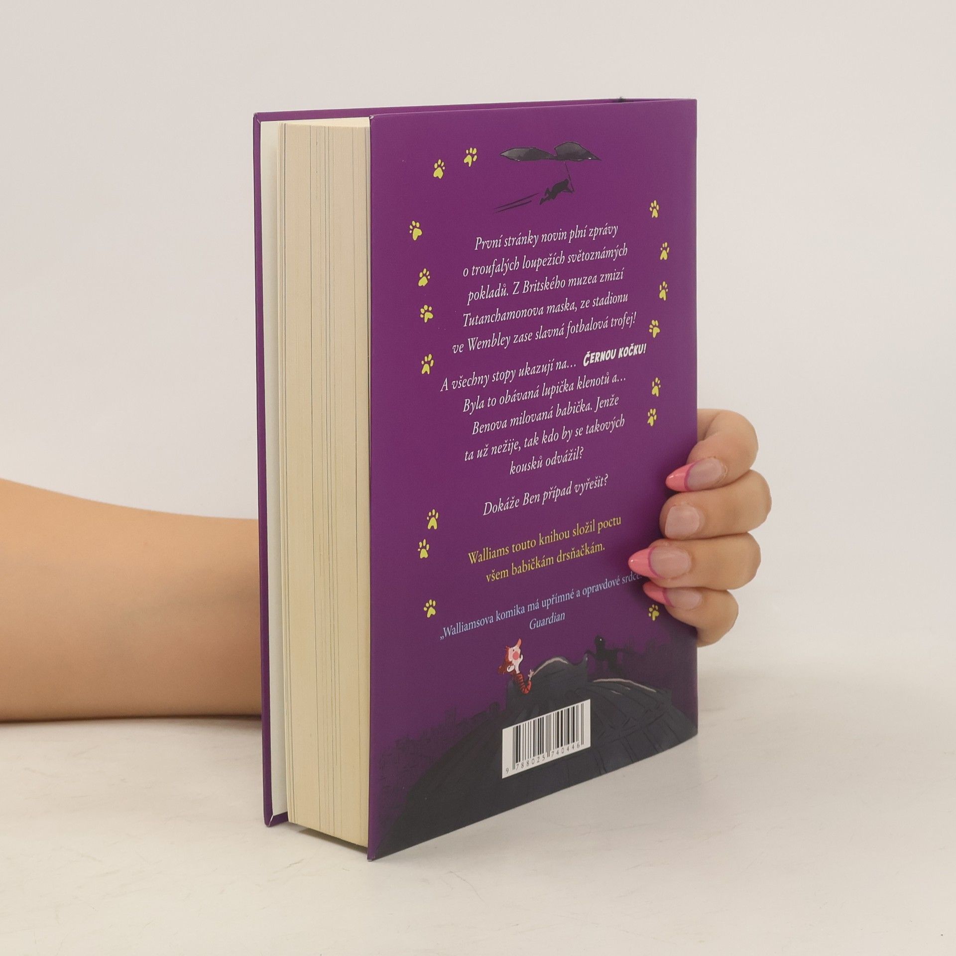 David Walliams se vrací do světa Babičky drsňačky v prvním a zároveň posledním (kdo ví) pokračování! Ben si zvyká na život bez své milované babičky. Byla svérázná: náruživě pojídala kapustu (což mělo za následek vytrvalé nevoňavé pokvákávání jejího zadku), skvěle hrála scrabble... a hlavně byla slavnou lupičkou známou pod přezdívkou Černá kočka. Benovi po ní zbyla báječná vzpomínka na neobyčejnou výpravu s cílem ukrást korunovační klenoty. A pak se stane cosi nevysvětlitelného. Pod rouškou tmy je uloupen největší světový poklad. A stopy vedou k Černé kočce! Ale to přece není možné... nebo je? Jestlipak Ben tuhle záhadu rozluští? Očekávejte nečekané. Bude to napínavé až do konce, a nadmíru zábavné!